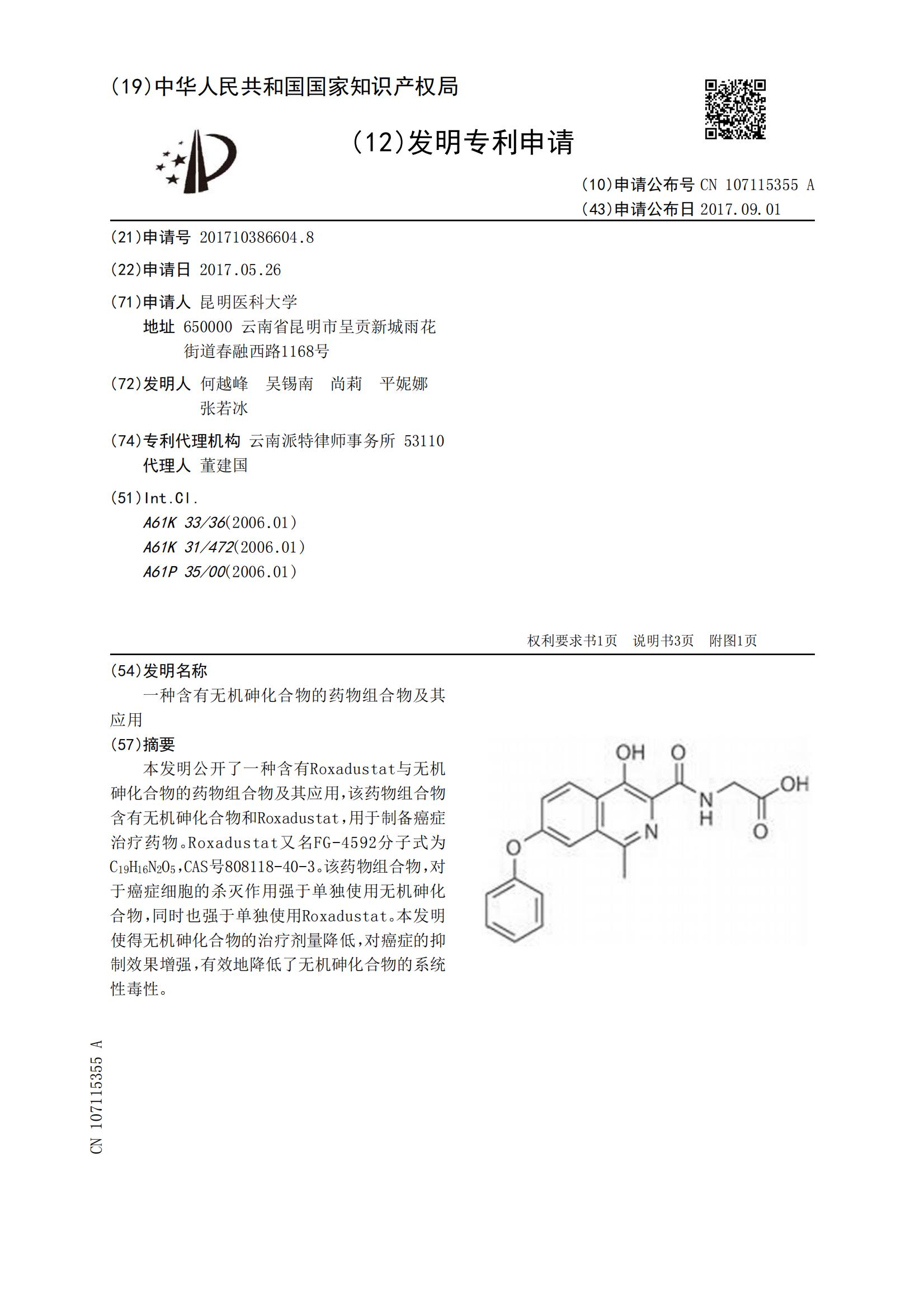 一种含有无机砷化合物的药物组合物及其应用CN107115355A