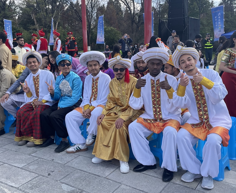 我校来自12个国家的中外师生穿着靓丽的各国传统服饰和各民族服装,在活动现场演唱了云南民歌《放马山歌》。他们清澈明亮的歌声、挥洒自如的舞蹈不仅展示了云南民歌的魅力,也让在座的观众体会到留学生对云南民歌别具一格的演绎,博得了现场热烈而持续的掌声与欢呼声,展现了我校学生健康阳光的良好形象。