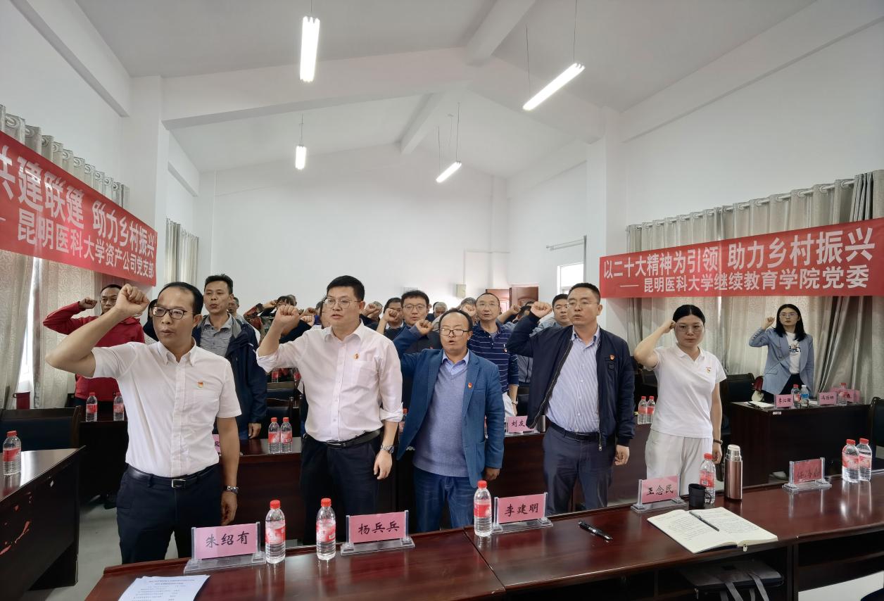为持续深入学习贯彻落实党的二十大精神,Beat365唯一官方网站资产经营有限责任公司直属党支部和营坡社区坡头党支部强化党建引领,充分发挥基层党组织共建联建作用,联合继续教育学院党委于10月28日在保山市龙陵县象达镇营坡社区,以“四融四促”先试先行,携手抓实基层党建促进乡村振兴。