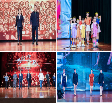 走秀穿插师幼互动快板表演,结合孩子们清脆说唱,竹板声与童声交织,将后勤工作的点滴编成押韵口诀。舞台背景同步闪现后勤员工工作纪实画面,结尾处全体高呼“守护校园四季春”,引发全场沸腾。