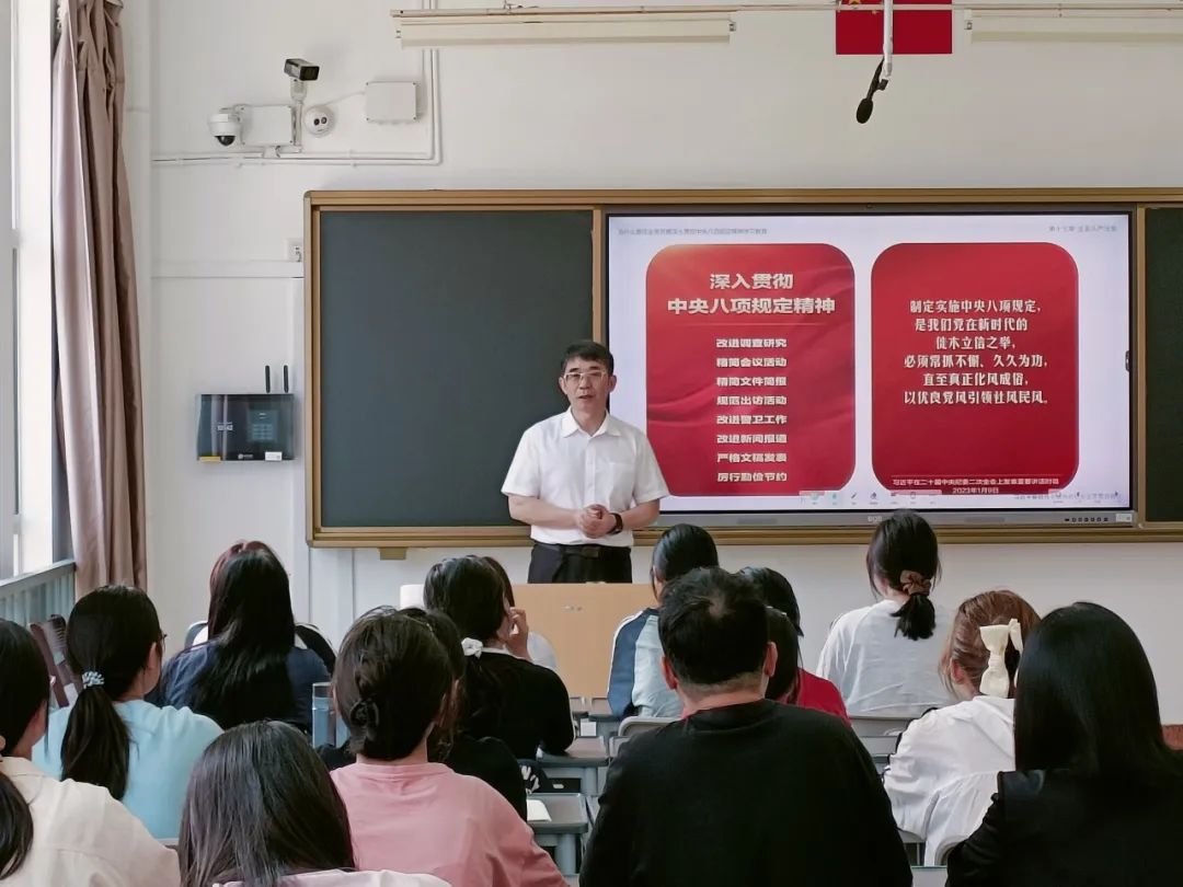 2025年5月16日上午,学校党委书记尹向阳分别为2024级公共事业管理专业、2024级生物医学工程专业的两个班同学讲授了“习近平新时代中国特色社会主义思想概论”课程中的“全面从严治党”专题。