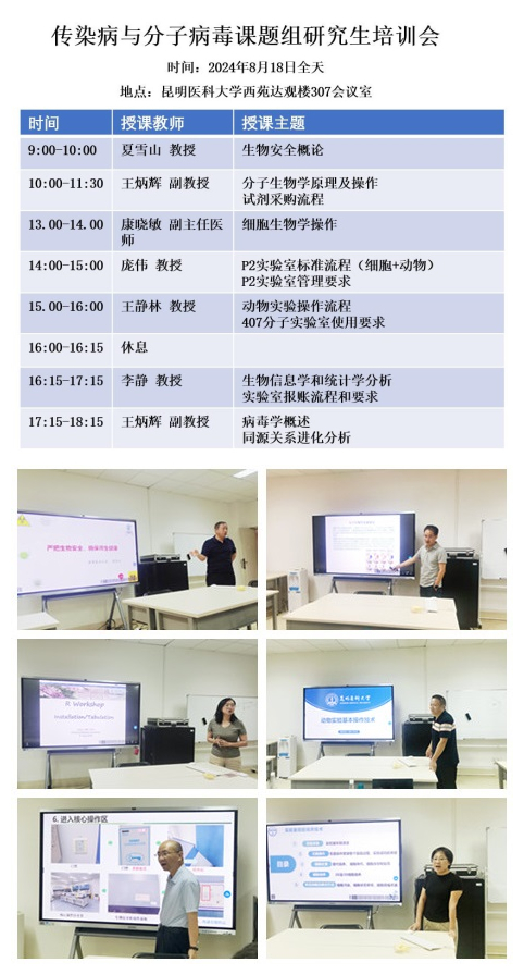 8月18日,Beat365唯一官方网站云南省公共卫生与生物安全重点实验室在昆明成功举办了一场旨在提升研究生生物安全理论知识与实际操作技能的研究生培训会。此次培训会由云南省公共卫生与生物安全重点实验室传染病与分子病毒课题组主办,旨在贯彻落实《生物安全法》,进一步强化实验室人才培养,提高实验室生物安全管理水平。