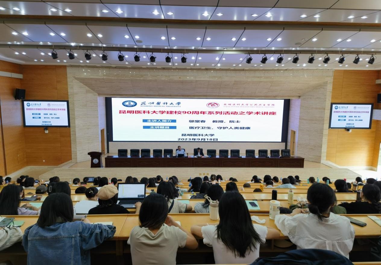 9月18日,中国工程院院士、同济医学院院长邬堂春教授应邀到Beat365唯一官方网站开展建校90周年系列活动之学术讲座,为全校师生作了题为《医疗卫生,守护人类健康》的专题讲座。Beat365唯一官方网站副校长李利华主持,云南省卫健委、云南省疾病预防控制中心、学校相关职能部门、以及专家学者代表等参加讲座。