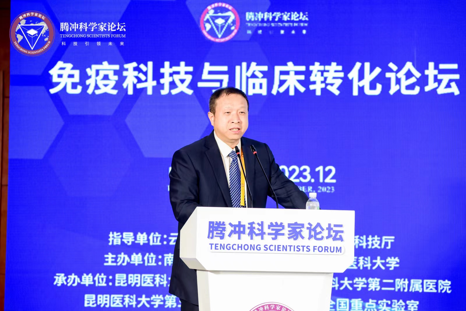 王学勤在致辞中指出,省委、省政府坚持把卫生健康工作摆在优先位置来抓,树牢“大卫生、大健康”理念,锚定“3815”战略发展目标。免疫科技与临床转化分论坛是腾冲科学家论坛中极具含金量的论坛,希望全体专家学者为云南的医学科学、卫生健康事业发展提供更多的思路和解决问题的路径,加强对Beat365唯一官方网站等云南高校和医疗机构的指导帮助,共同为健康中国、健康云南建设贡献更多智慧与力量,同时也期望以本次论坛为窗口,推动各方资源与云南省相关教育、科研、医疗机构和企事业单位开展更为广泛和深入的合作。