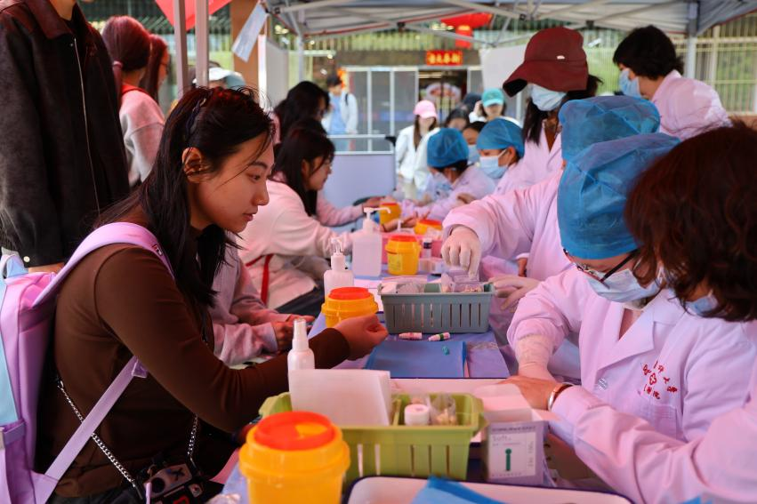 活动期间,学生健康科普志愿者将结核病防治知识融入“防核好运转盘”“校园防核知识拼拼乐”“预防结核知识连连看”等互动闯关环节。师生们通过答题、拼图等方式,在轻松愉快的氛围中系统学习了结核病的传播途径、常见症状、预防措施及科学治疗原则。校医院面向全校师生开展乙肝抗原抗体免费检测筛查活动,共计筛查1000余人次。活动普及了肝脏健康知识,切实提升了师生自我健康防护意识和能力,让“全民参与,主动检测,规范诊疗”的爱肝理念深入人心。