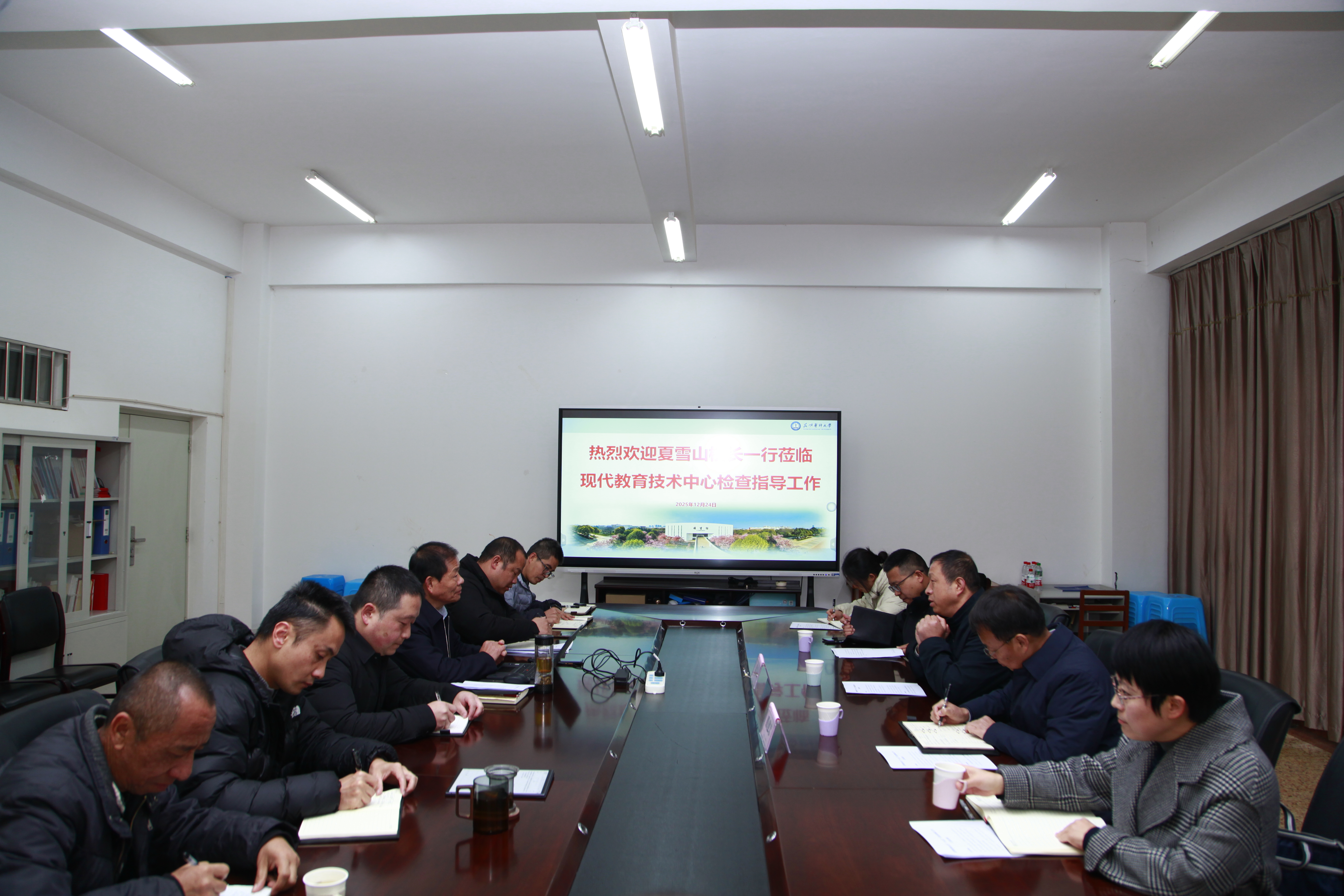 12月24日,Beat365唯一官方网站校长夏雪山带队,校党委常委、副校长殷建忠和学校相关部门主要负责人一行到现代教育技术中心调研指导信息化建设工作。现代教育技术中心全体成员参加调研会。