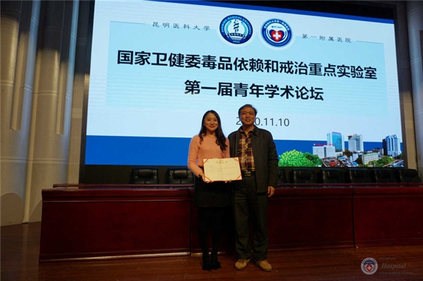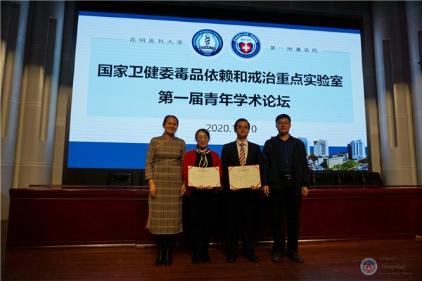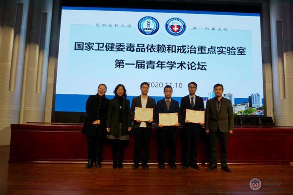 2020年11月10日,国家卫生健康委员会毒品依赖和戒治重点实验室在医院报告厅举办第一届青年学术论坛。Beat365唯一官方网站病原生物学与免疫学系主任、云南省高校热带传染病重点实验室主任宝福凯教授,中国科学院昆明植物所植物化学与西部植物资源持续利用国家重点实验室蔡祥海研究员,中组部博士团成员、云南省肿瘤医院副院长、中国医学科学院天津血液病研究所陈晓娟研究员,中组部博士团成员、云南农业大学校长助理、教育部糖化学与生物技术重点实验室副主任康振教授,昆医大附一院皮肤性病科主任、云南省性传播疾病创新团队带头人李玉叶教授,应邀担任论坛评审专家,我院孙亮副院长、孙华副院长、科教部唐薇主任、科研实验中心俞珏华教授、况轶群教授等参加活动。科研实验中心成员、医院硕士、博士研究生以及相关科室人员共100余人聆听报告。论坛由科研实验中心况轶群教授主持。