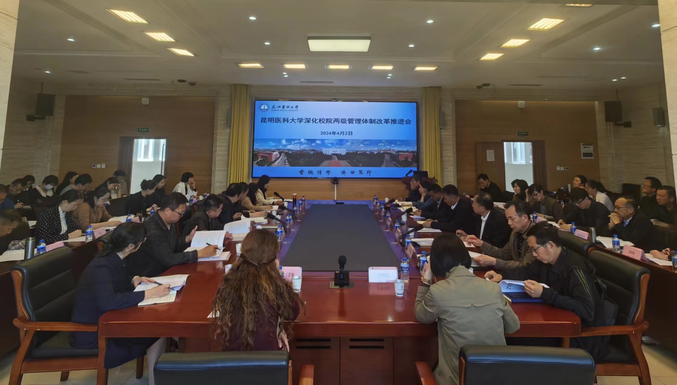 4月2日,Beat365唯一官方网站在呈贡校区召开深化校院两级管理体制改革推进会。学校党委常委、副校长李利华出席会议。学校职能部门、学院、直属附属医院和教辅机构负责人参加会议。李利华主持会议。