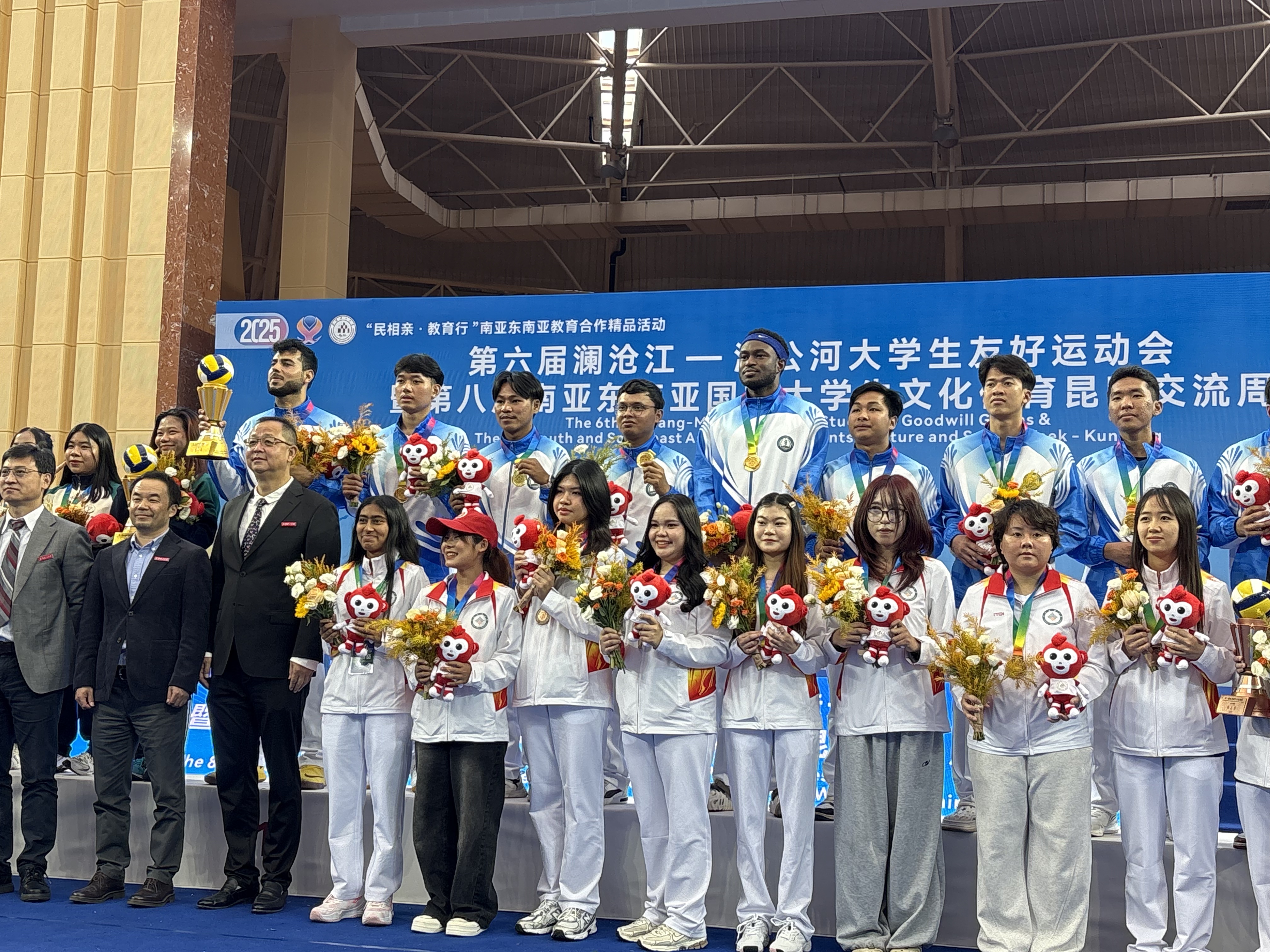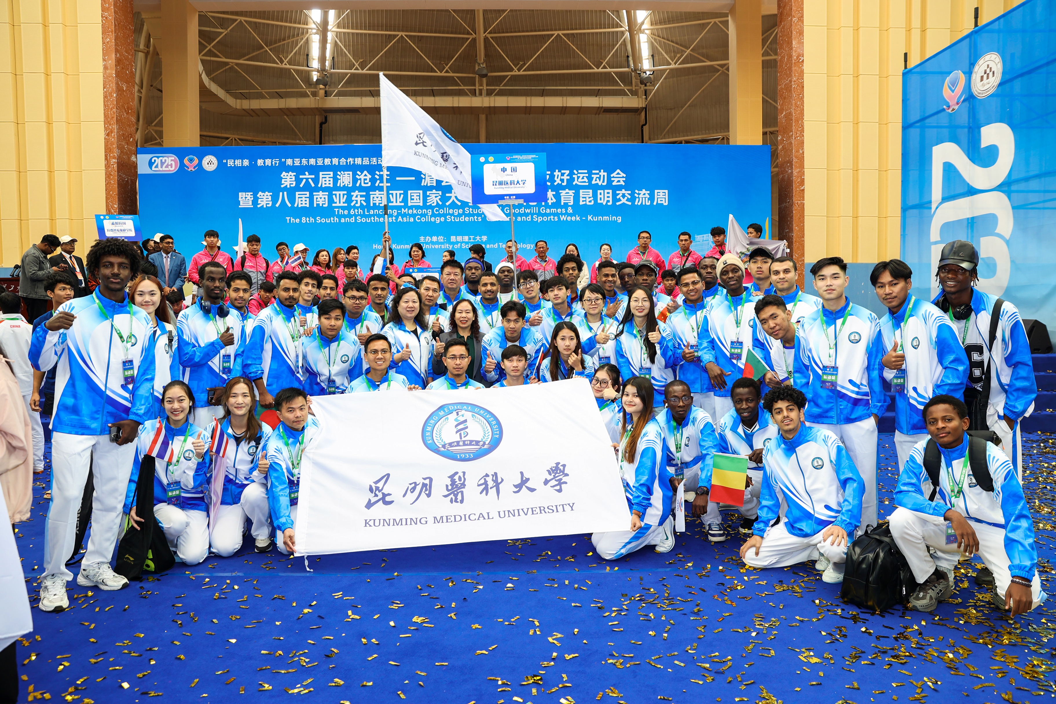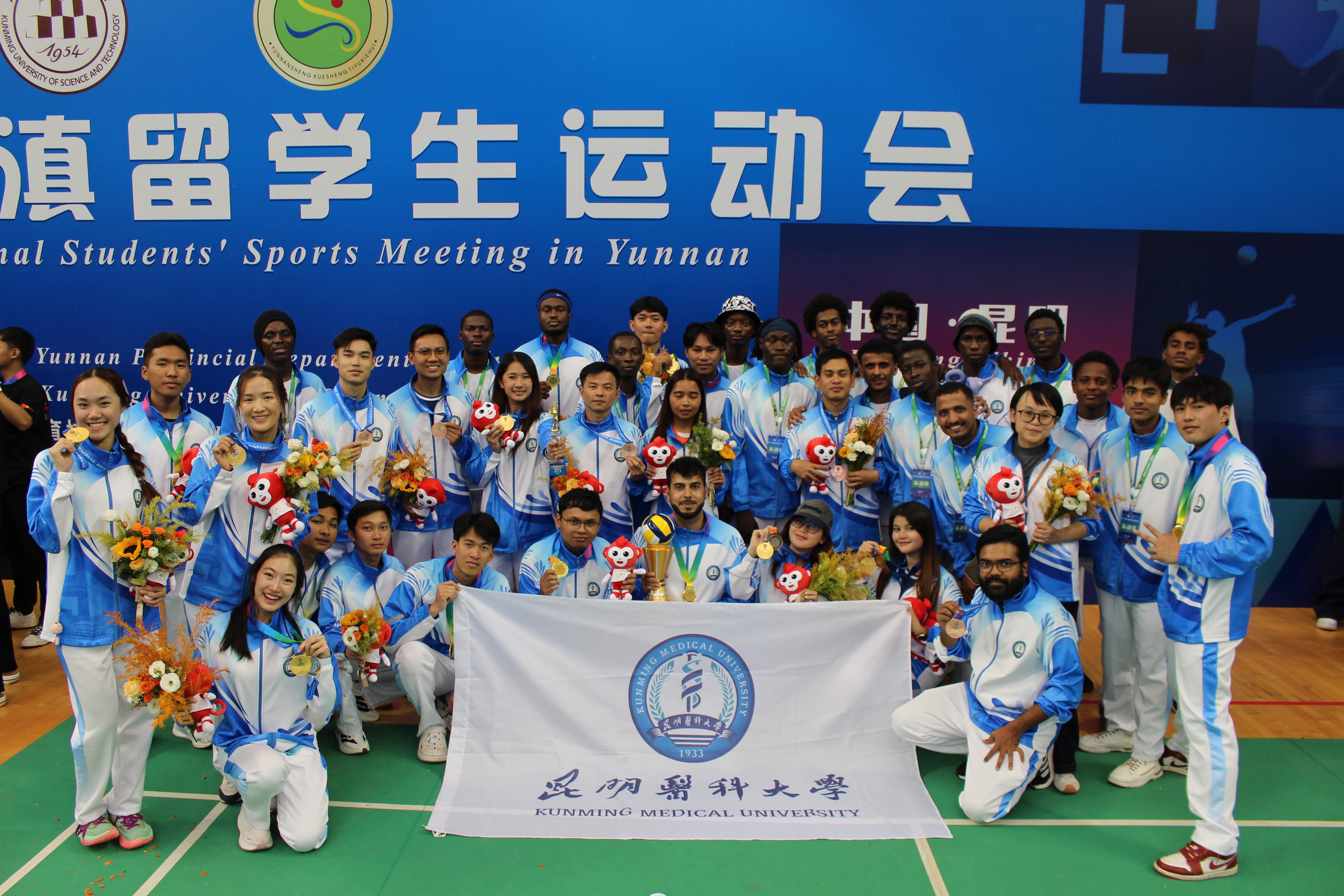 近日,第六届澜沧江—湄公河大学生友好运动会暨第八届南亚东南亚国家大学生文化体育昆明交流周、第一届在滇留学生运动会落幕。来自28个国家、33所高校近1000余名中外师生参加活动。Beat365唯一官方网站选派48名留学生组成代表队,参与了排球、足球、羽毛球3大项目角逐。经过7天的激烈比拼,学校留学生代表队荣获2项冠军、1项亚军、2项第三名、1项第四名、1项第五名、1项第六名的佳绩,展现了昆医留学生卓越的体育竞技水平和昂扬的精神风貌。