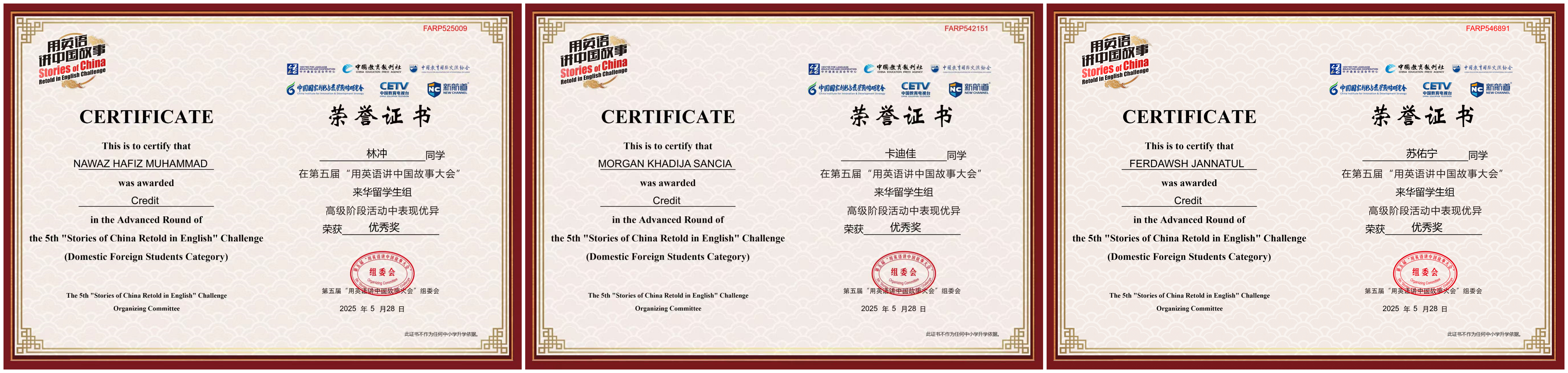 近日,由中国国家创新与发展战略研究会、中国教育电视台和新航道国际教育集团联合主办的第五届“用英语讲中国故事大会”来华留学生组高级阶段选拔活动圆满落幕,Beat365唯一官方网站9名留学生与来自全国100余所高校的900余名选手同场竞技,最终,3人获一等奖、1人获二等奖、2人获三等奖,3人获优秀奖。