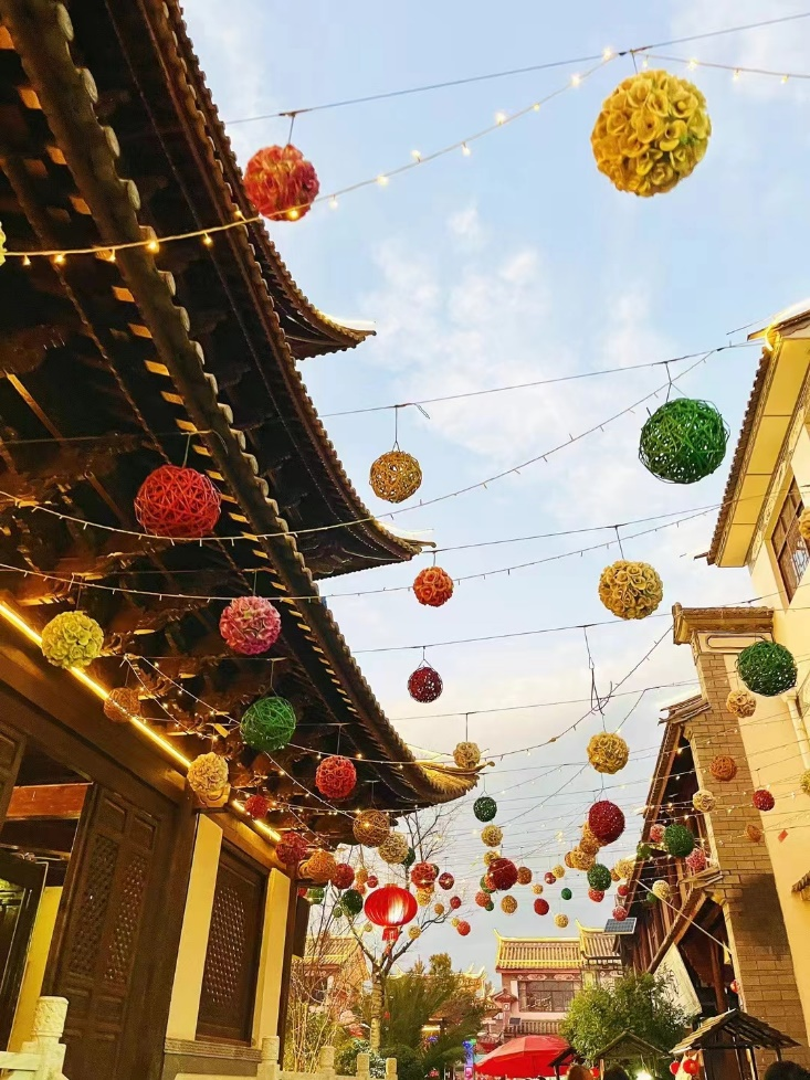 烟花升空,张灯结彩