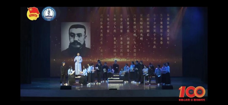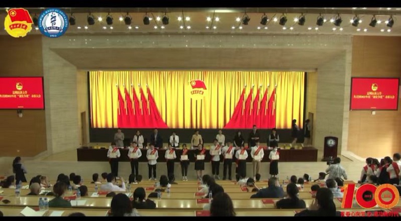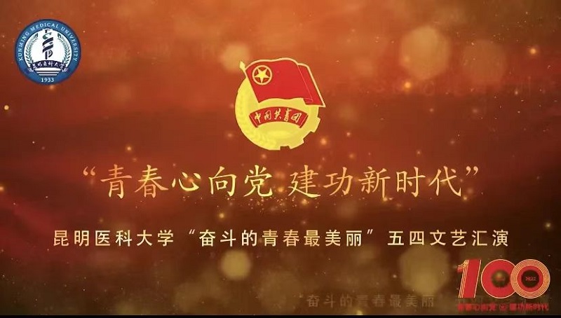 环节二,观看由昆医青年唱响的青春乐章《强国一代有我在》MV。环节三,重温入团誓词,在誓词中,践行初心使命,共庆建团百年。环节四,“奋斗的青春最美丽”五四文艺汇演,舞蹈《红旗颂》、朗诵《医路相承》、情景剧《青春时代》、舞蹈《少年中国说》、舞蹈《映山红》、合唱《灯火里的中国》《强国一代有我在》依次表演,晚会形式多样、内容丰富、主题鲜明。