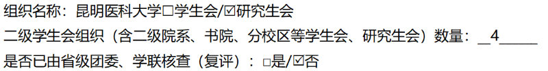 (二)二级学生会组织(含二级院系、书院、分校区等研究生会)改革自评表