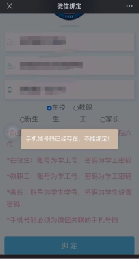 问题四:显示“手机端号码已经存在,不能绑定”