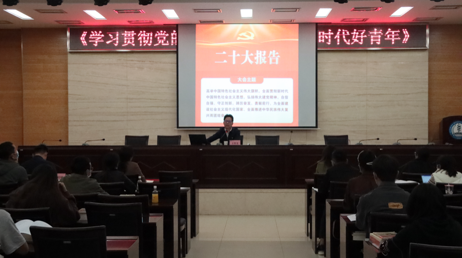 王贵义进行培训第一讲,以“深入学习贯彻党的二十大精神,做新时代好青年”为题,从“青年对自我的认知——我是什么?”“党的二十大是什么”“深入学习贯彻党的二十大精神”“做新时代好青年的要求”四个方面进行专题讲授,带领同学们回顾了党的百年奋斗历程、历次党代会对党章的修改,并重点解读了党的二十大报告。王贵义希望广大青年要做有格局、有情怀、有境界、有本领的新时代好青年,思想上要坚定自信、增强自觉、维护权威、弘扬精神,行动上要强化理论武装、增强实践磨砺、主动担当作为。