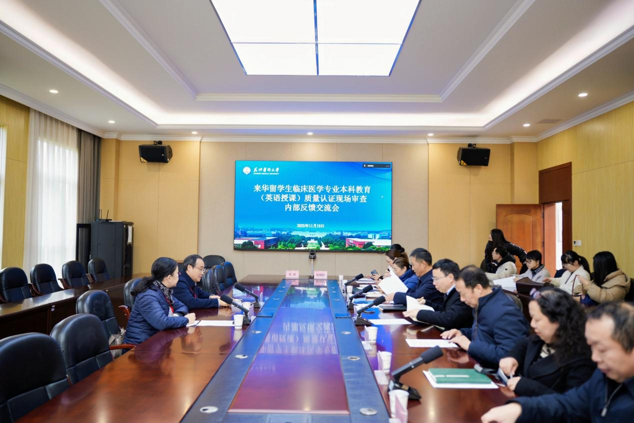 11月18日下午,学校党委常委、副校长李利华、何永文,相关职能部门、培养单位和国际教育学院负责人与专家见面。李利华汇报了学校来华留学生临床医学专业本科教育(英语授课)质量认证工作开展情况、特色和亮点,并提出了进一步努力的方向。他强调,Beat365唯一官方网站高度重视来华留学生临床医学专业本科教育(英语授课)质量认证,认证工作是对学校来华留学生临床医学专业本科教育(英语授课)的系统评价和验收,更是对学校来华留学生教育工作的全面指导、支持和帮助。他表示,学校将全力配合专家组工作,虚心接受和认真吸纳专家提出的意见建议,以认证工作为契机,不断提升学校来华留学办学水平,为教育强国建设贡献力量。
