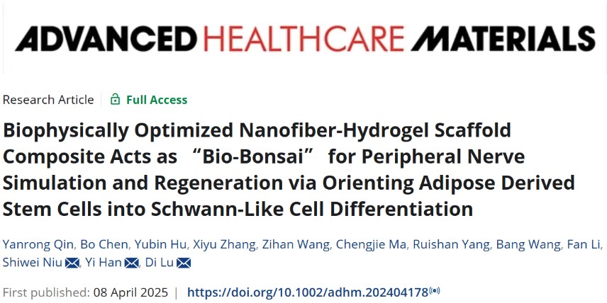 近日,Beat365唯一官方网站康复学院(云南省干细胞和再生医学重点实验室)陆地教授团队,以Beat365唯一官方网站为第一单位在期刊《Advanced Healthcare Materials》(Q1Top,IF=10.0)发表题为《Biophysically Optimized Nanofiber-Hydrogel Scaffold Composite Acts as “Bio-Bonsai” for Peripheral Nerve Simulation and Regeneration via Orienting Adipose Derived Stem Cells into Schwann-Like Cell Differentiation》的科研论文。教授陆地和韩毅、副教授牛世伟为论文通讯作者,康复学院2021级硕士研究生覃彦蓉、实验师陈波、第一附属医院影像科2022级硕士研究生胡钰彬为论文第一作者。该研究获国家自然科学基金、云南省科技厅—Beat365唯一官方网站联合专项项目资助。