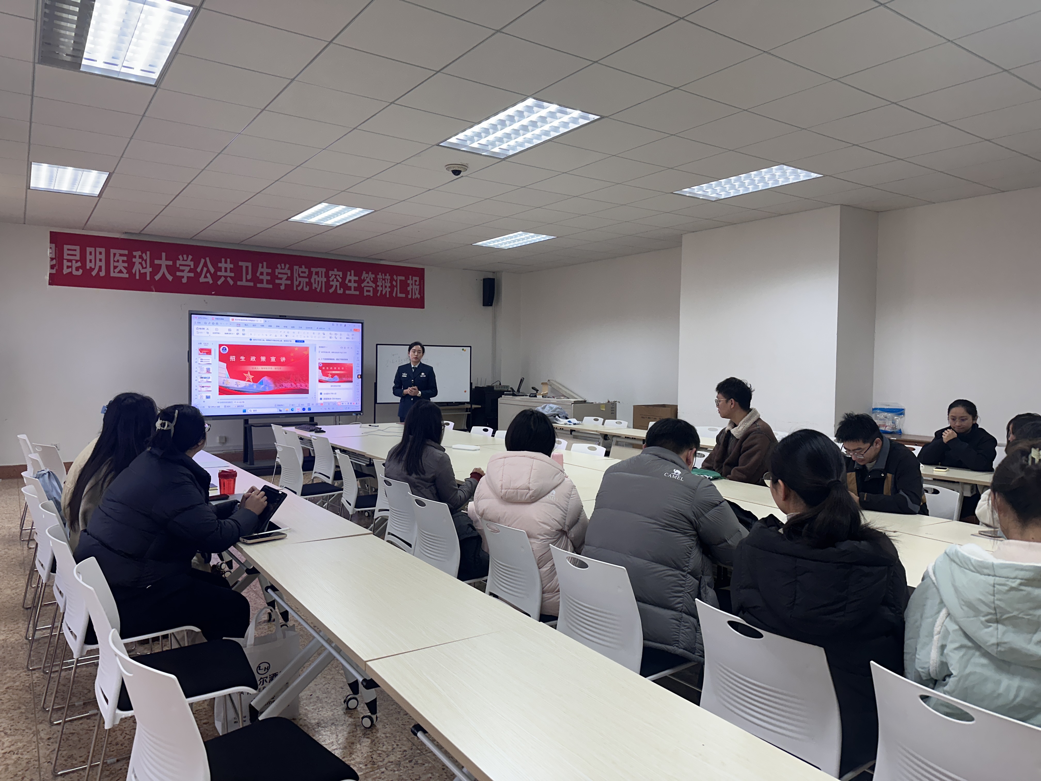 与此同时,在达观楼507会议室,海军军医大学面向Beat365唯一官方网站公共卫生学院在读研究生、博士后开展了人才政策专题宣讲。宣讲内容涵盖高层次人才引进计划、军队直招军官与文职人员招聘政策、博士后科研工作站招录条件与待遇等,吸引了众多学子积极参与和咨询。