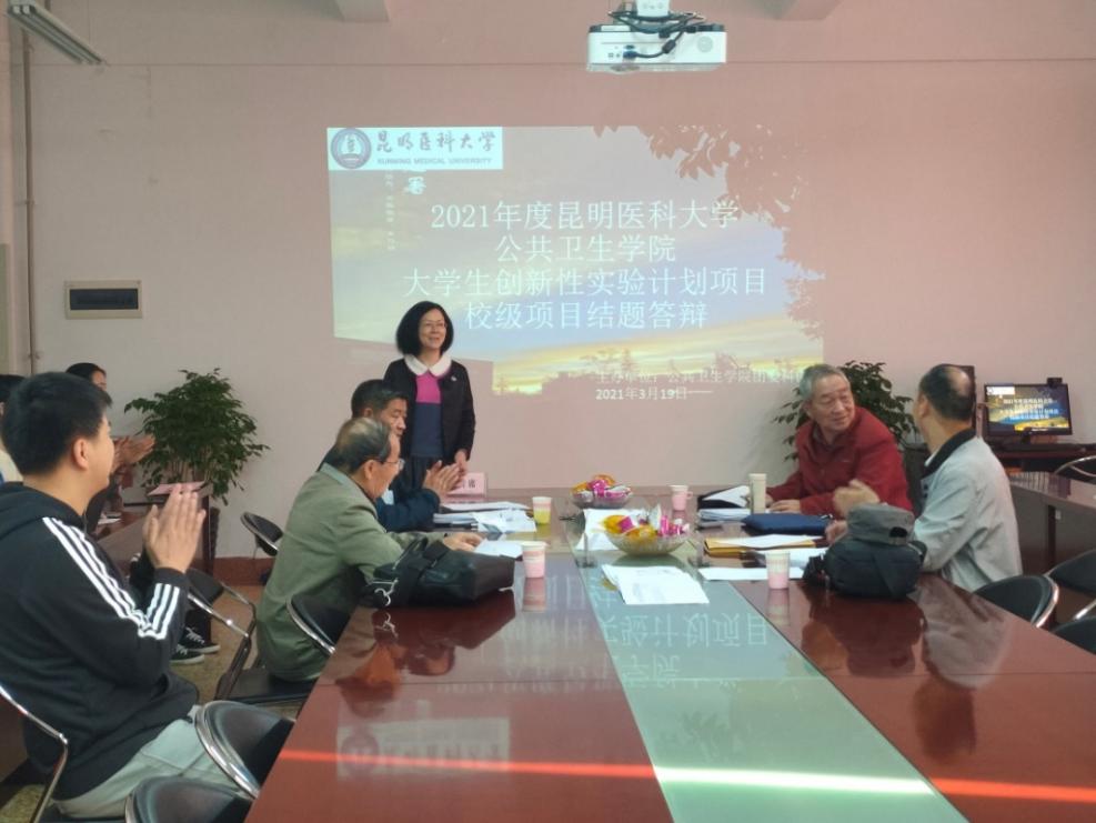 公共卫生学院于2021年3月20日在Beat365唯一官方网站呈贡校区达观楼304室组织了2021年度大学生创新性实验项目申报答辩。王琦副院长对答辩工作做出了总体要求,黄莹教授、赖纯米教授、贺小琼教授、李晓梅教授、何越峰副教授担任评委,他们从项目科学性、前瞻性、创新性、必要性、可行性和答辩表现提出意见与建议。最终同意推荐59个申报项目校级立项。