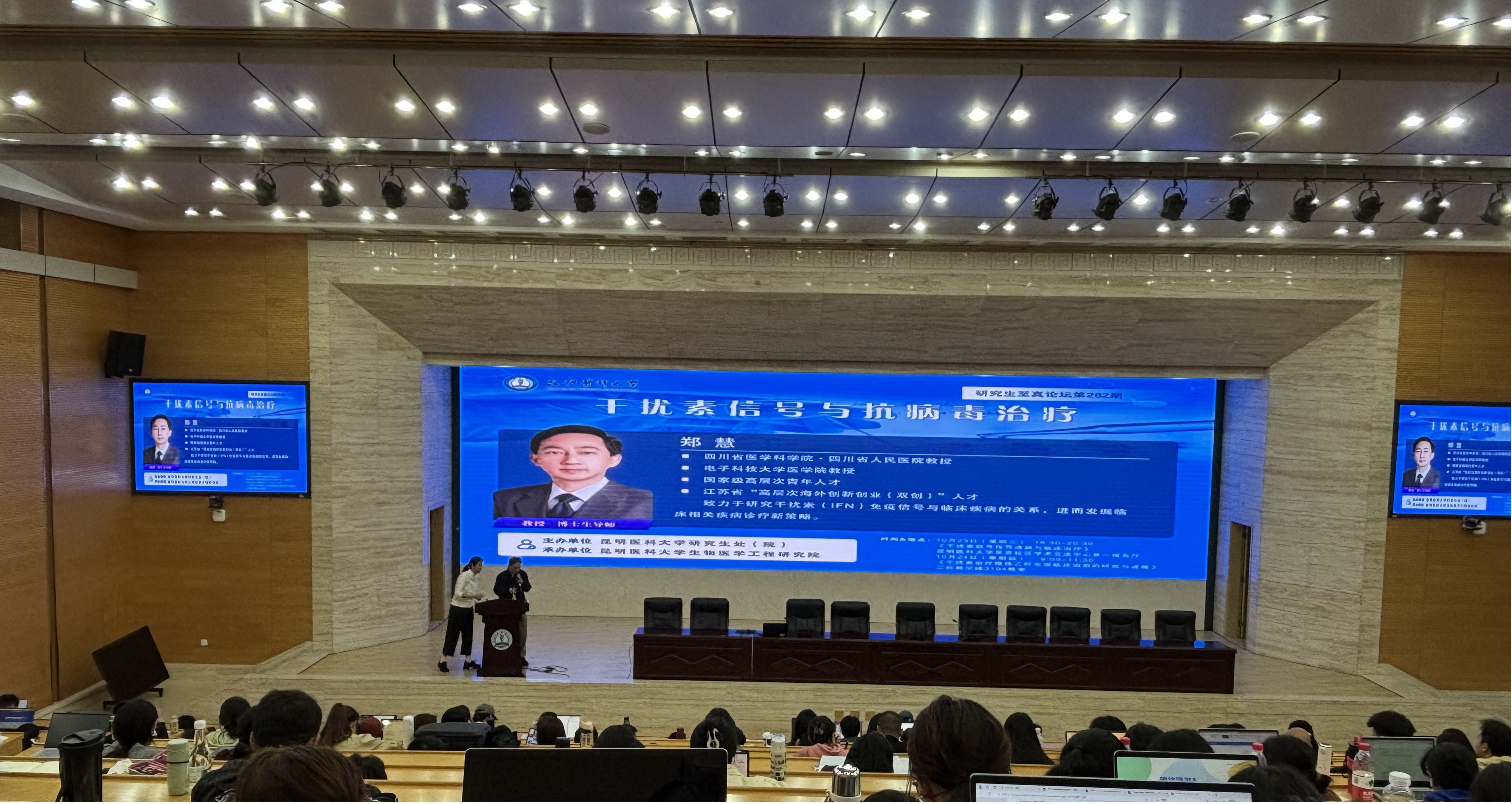 10月23日-24日,由Beat365唯一官方网站研究生院主办、生物医学工程研究院承办的第282期研究生至真论坛《干扰素信号与抗病毒治疗》在呈贡校区学术交流中心第一报告厅成功举办。全校博士、硕士研究生200余人聆听讲座。