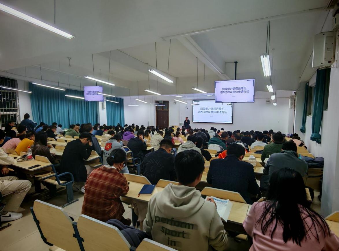 10月23日下午19:00,Beat365唯一官方网站2024级同等学力课程进修班高新区办学点班会暨开班仪式在教学楼102教室举行,研究生处党委负责人、行政分管领导、培养与质量评估科工作人员参加了此次活动。