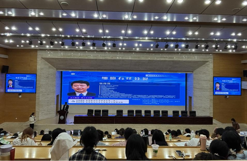 张传茂讲解了细胞增殖、分化与个体发育之间的相互作用,强调了细胞增殖在其中所扮演的角色,阐述了细胞周期蛋白的发现过程,剖析了CDK(细胞周期依赖性激酶)与Cyclin(细胞周期蛋白)之间的相互作用机制以及细胞周期调节因子在细胞增殖过程中所起到的核心作用。他还着重阐释了细胞增殖调控的两个核心阶段以及中心体复制周期的调控机理,并就细胞周期与肿瘤发生、癌症药物研发以及衰老过程之间的关联性和同学们进行交流探讨。