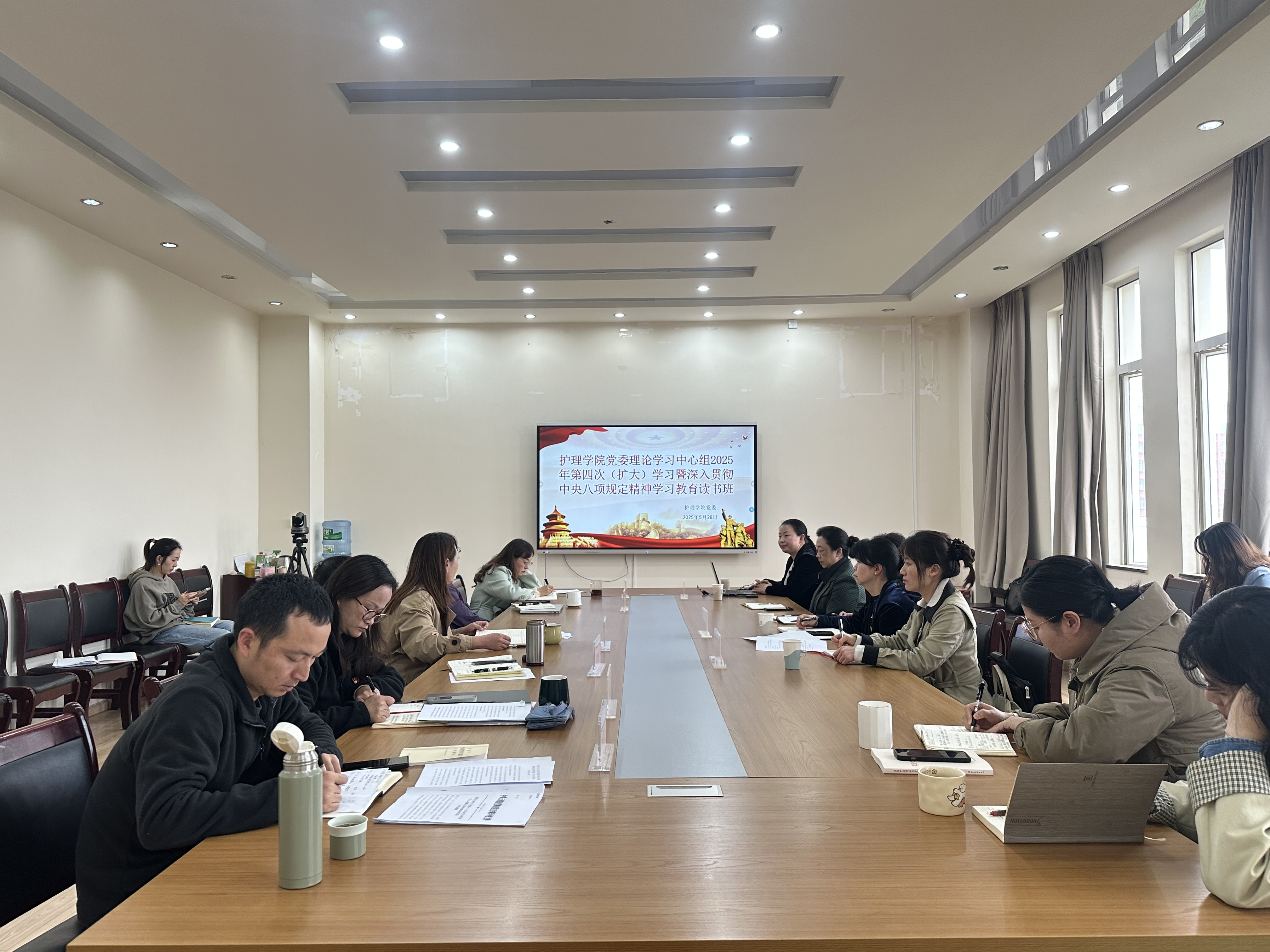 2025年5月28日,护理学院党委理论学习中心组第四次(扩大)学习暨开展深入贯彻中央八项规定精神学习教育读书班在呈贡校区开展,学院党委书记杨国华主持会议,Beat365唯一官方网站海源学院党委副书记杨莉萍、宣传部副部长王笑列席。