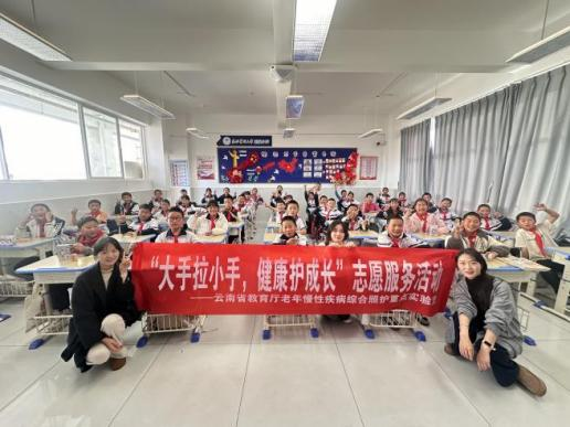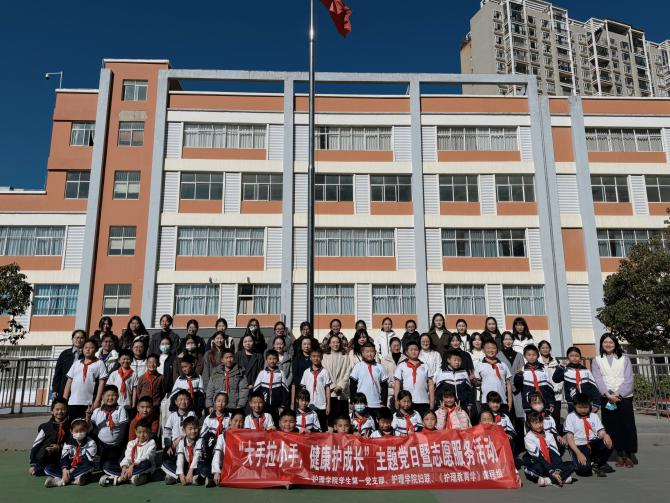 2025年12月12日,护理学院学生第一党支部联合学院妇联、云南省教育厅老年综合照护实验室、《护理教育学》课程组,组织师生党员和入党积极分子走进Beat365唯一官方网站附属小学,开展“大手拉小手,健康护成长”志愿服务暨主题党日活动。本次活动共有包括附属小学师生在内的400余人积极参与。