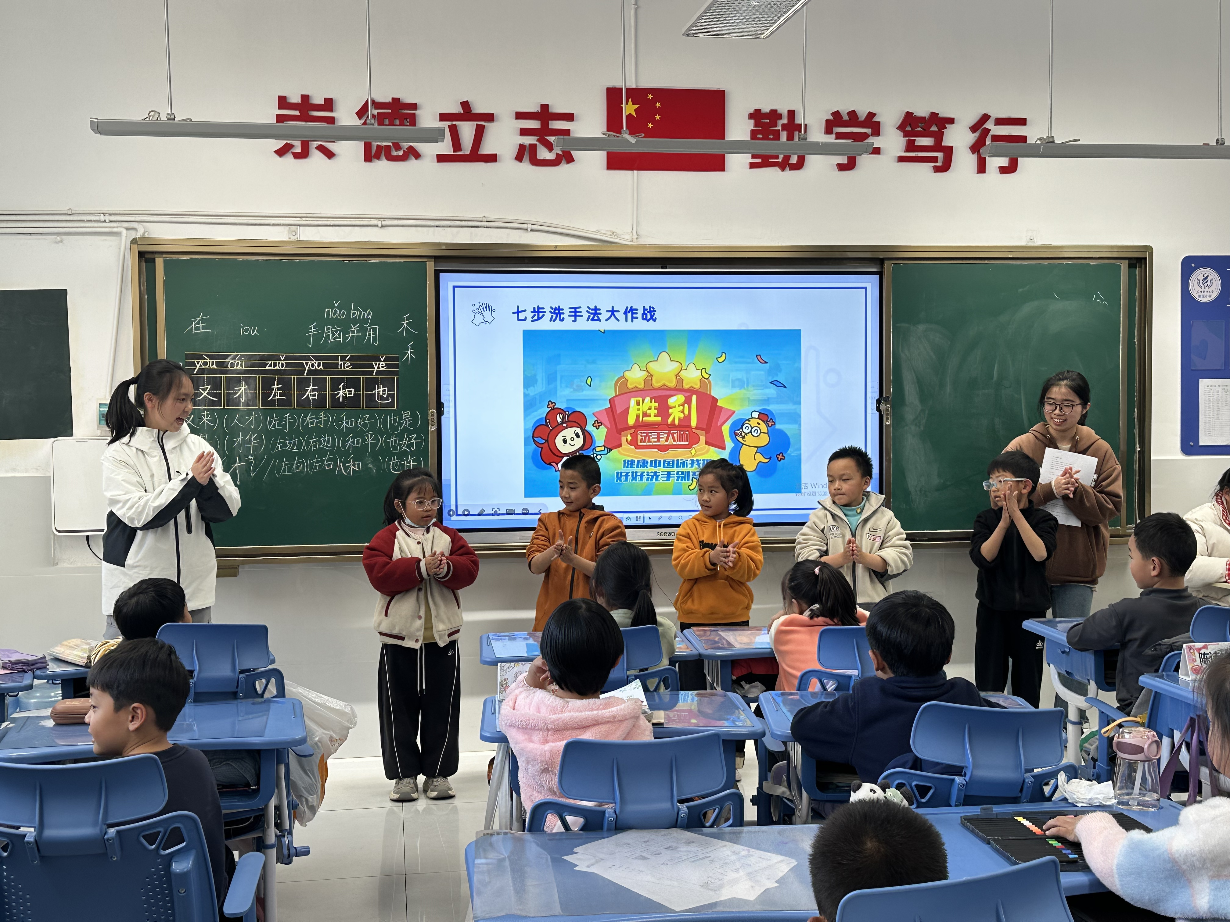 活动当天,志愿者们依据一至六年级学生的认知特点,精心设计了形式多样、贴合实际的健康科普内容和小礼物。面向低年级学生,围绕“七步洗手法”“爱牙小课堂”等主题,通过游戏互动、儿歌教学等生动形式,帮助孩子们掌握基础卫生知识。针对中高年级学生,重点开展急救技能实操、情绪管理辅导、青春健康知识普及等内容,借助模拟教具和情景演练,帮助孩子们掌握实用的自我保护与健康管理技能,在实践中增强了健康意识与应变能力。同学们积极互动参与,现场氛围活泼热烈。