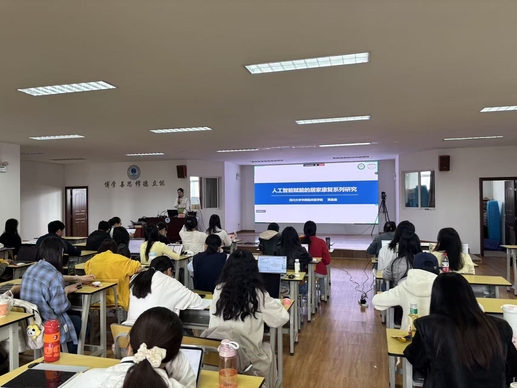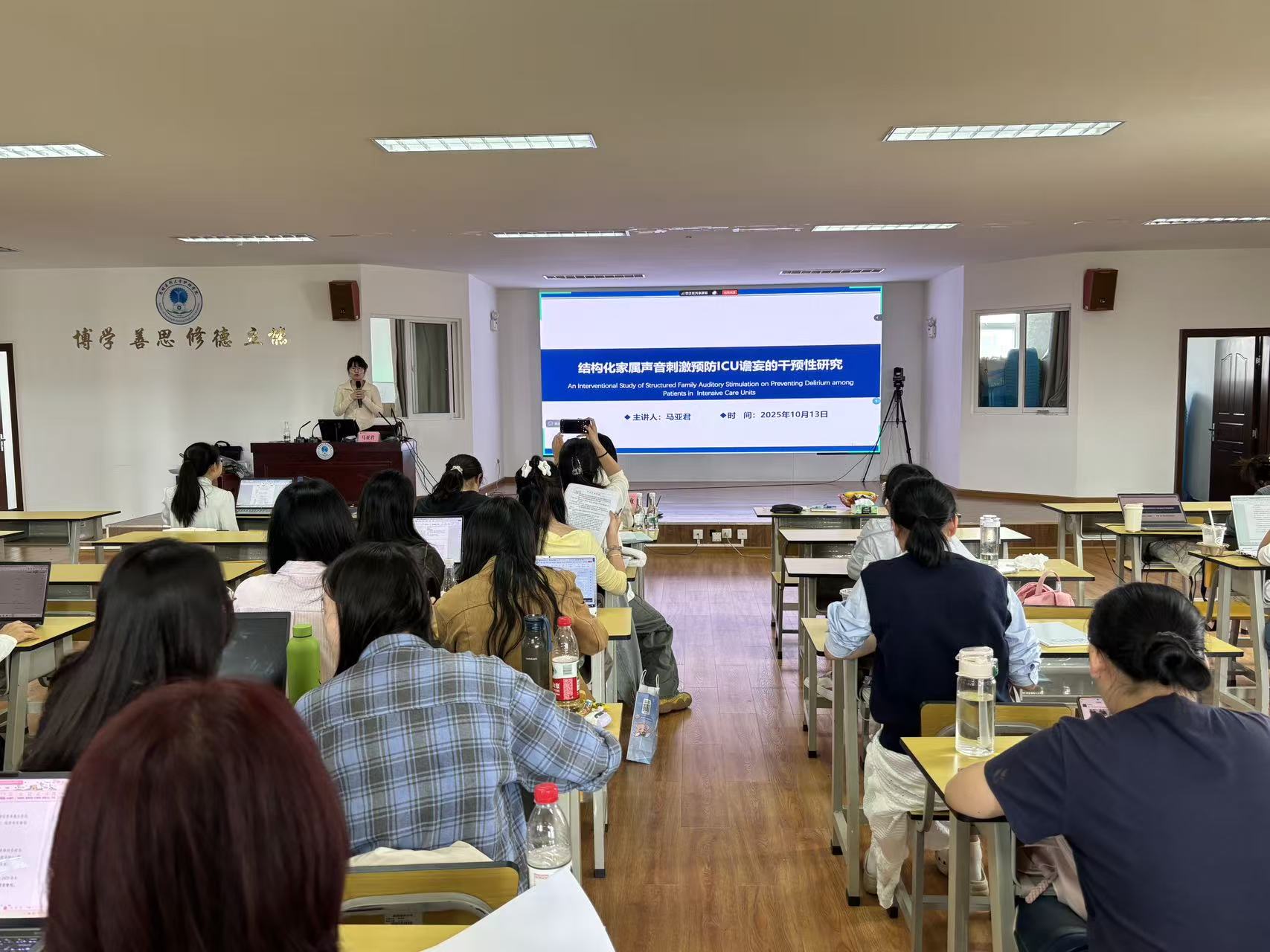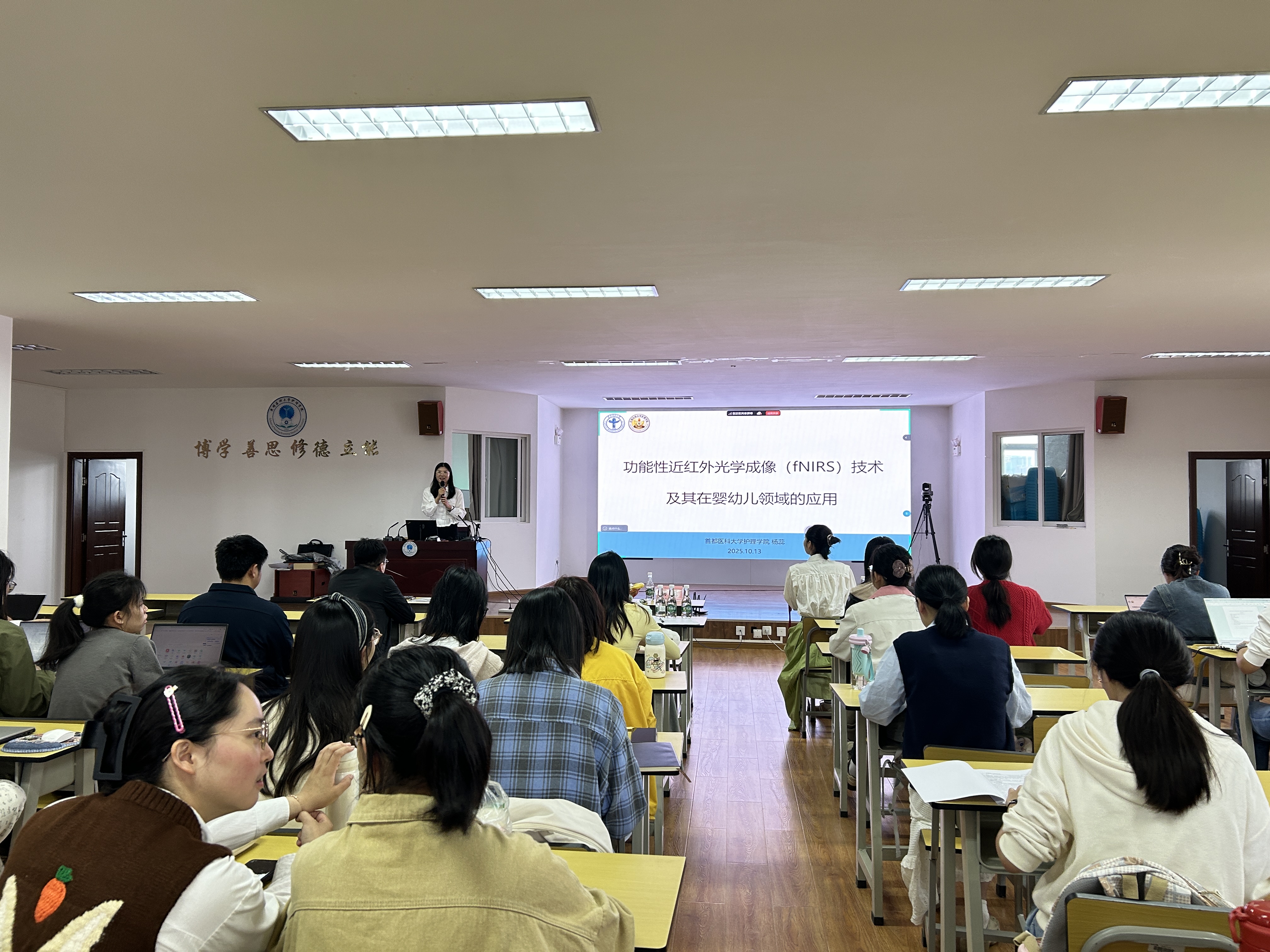四位青年学者分别作了题为《护理科研思维的培养:从探索到深耕的实践路径》《功能性近红外光学成像(fNIRS)技术及其在婴幼儿领域的应用》《人工智能赋能的居家康复系列研究》《结构化家属声音刺激预防ICU谵妄的干预性研究》的专题讲座。讲座结束后,护理学院副院长陶慧、杨倩蓉为讲者颁发感谢状。