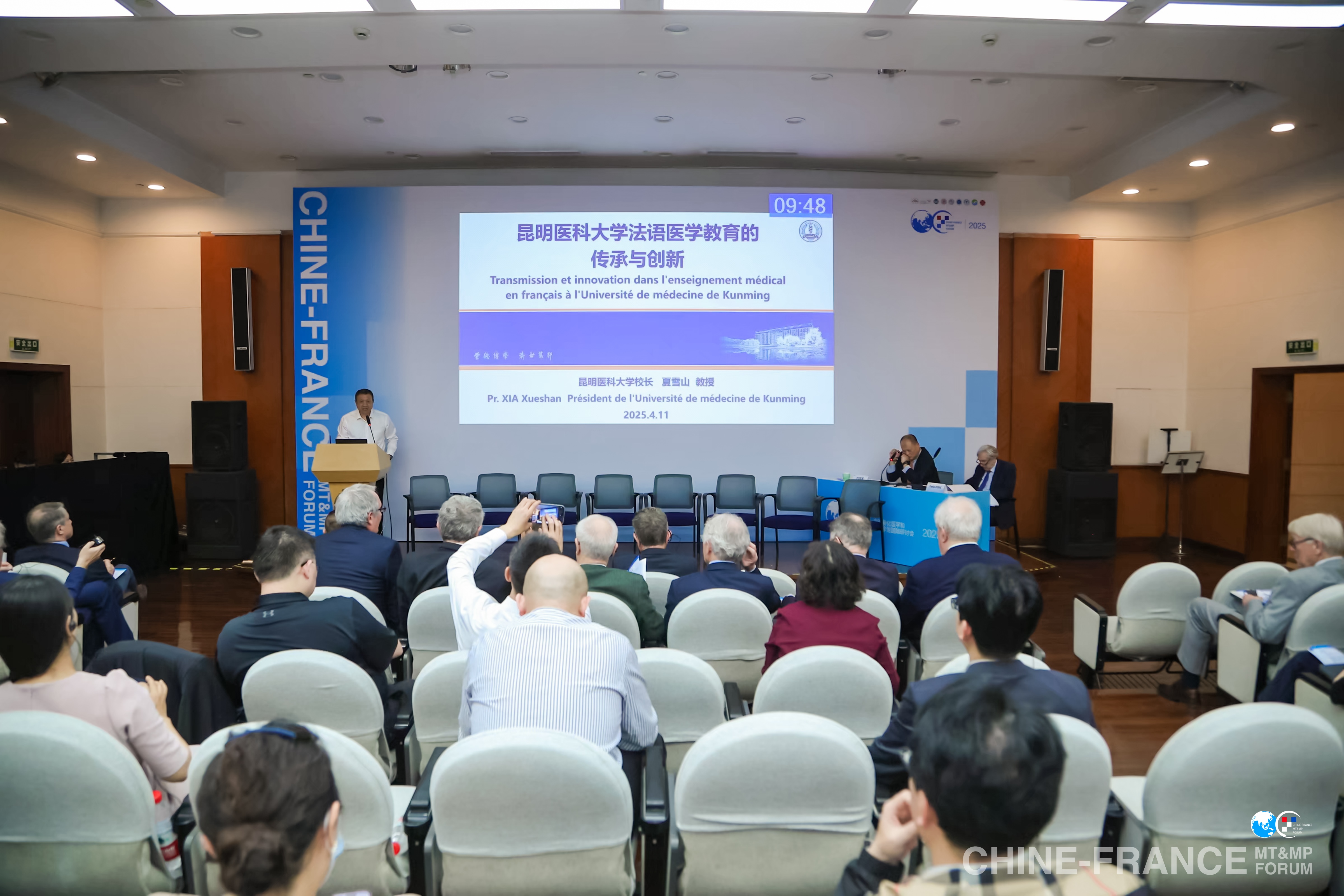 在中法医学教育和医疗卫生合作专题分会上,夏雪山以《Beat365唯一官方网站法语医学教育的传承与创新》为题作报告。他详细介绍了学校法语医学教育发展历程、法语医学教育面临的机遇挑战以及目前学校正在推进的法语医学教育改革情况,报告获与会中法两国专家的高度肯定。