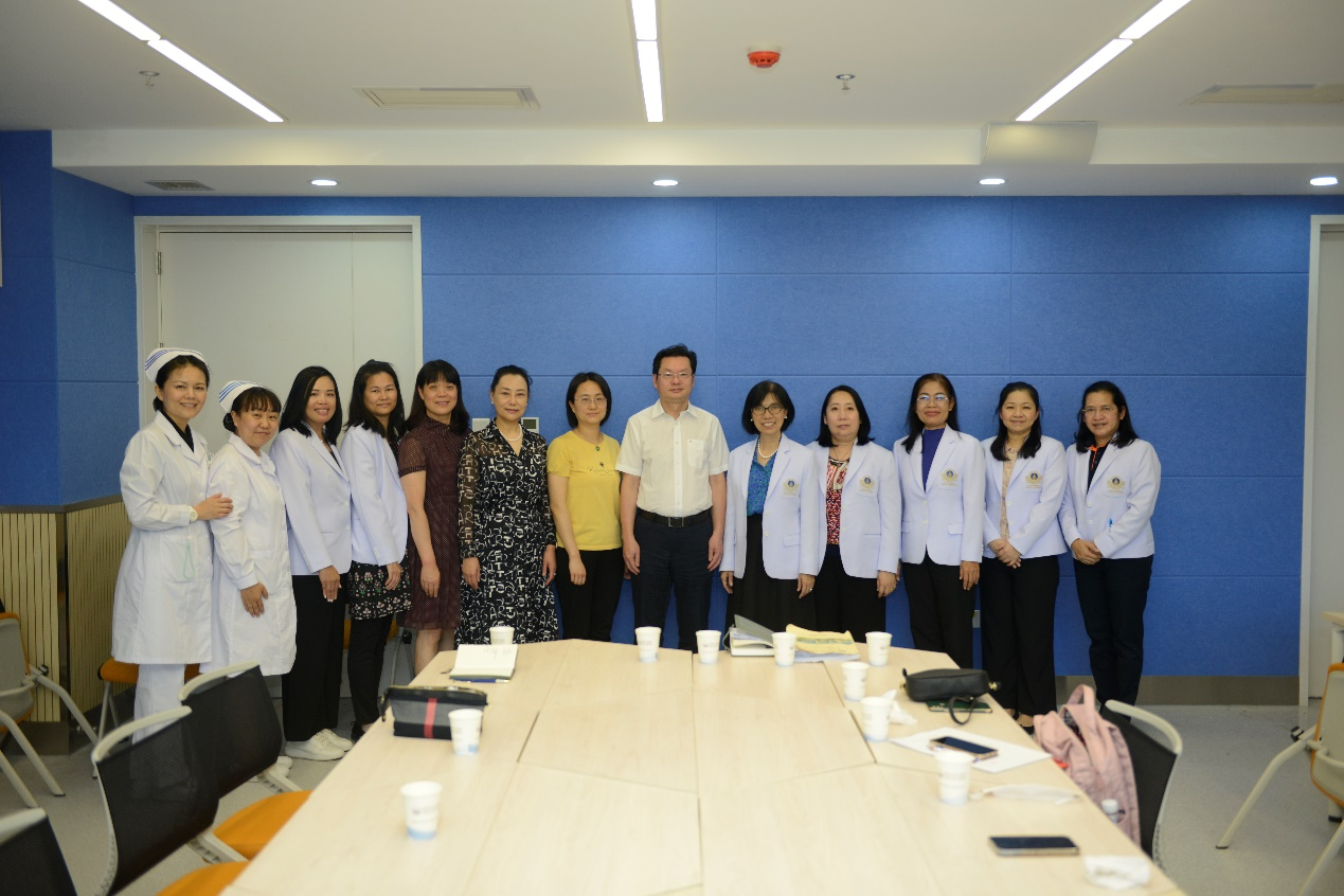 此外,泰方代表团在护理学院副院长陶慧陪同下,到护理学实践教学基地Beat365唯一官方网站第一附属医院参观考察,受到院长曾仲、副院长梁红敏、护理部主任田莹等的热情接待,泰方教师对医院的内科、外科、儿科、妇产科、精神科本科生实习带教的基础条件与师资水平进行了考察和评估。另外,泰方一行还参观考察了金马社区卫生服务中心,中心主任杨丹一行陪同进行了交流。