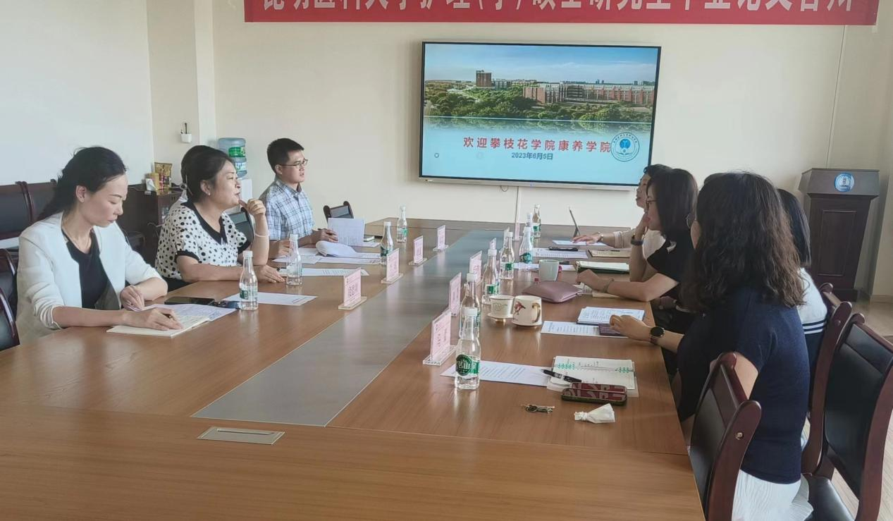 2023年6月5日,攀枝花学院康养学院院长兰玛、教研科科长刘松鑫、护理教研室主任段思羽、教师代表安文红一行4人到我院交流。我院副院长(主持工作)卢玉林、副院长陶慧及教学管理办公室主任、教研室主任、教师代表共6人参与了此次交流。
