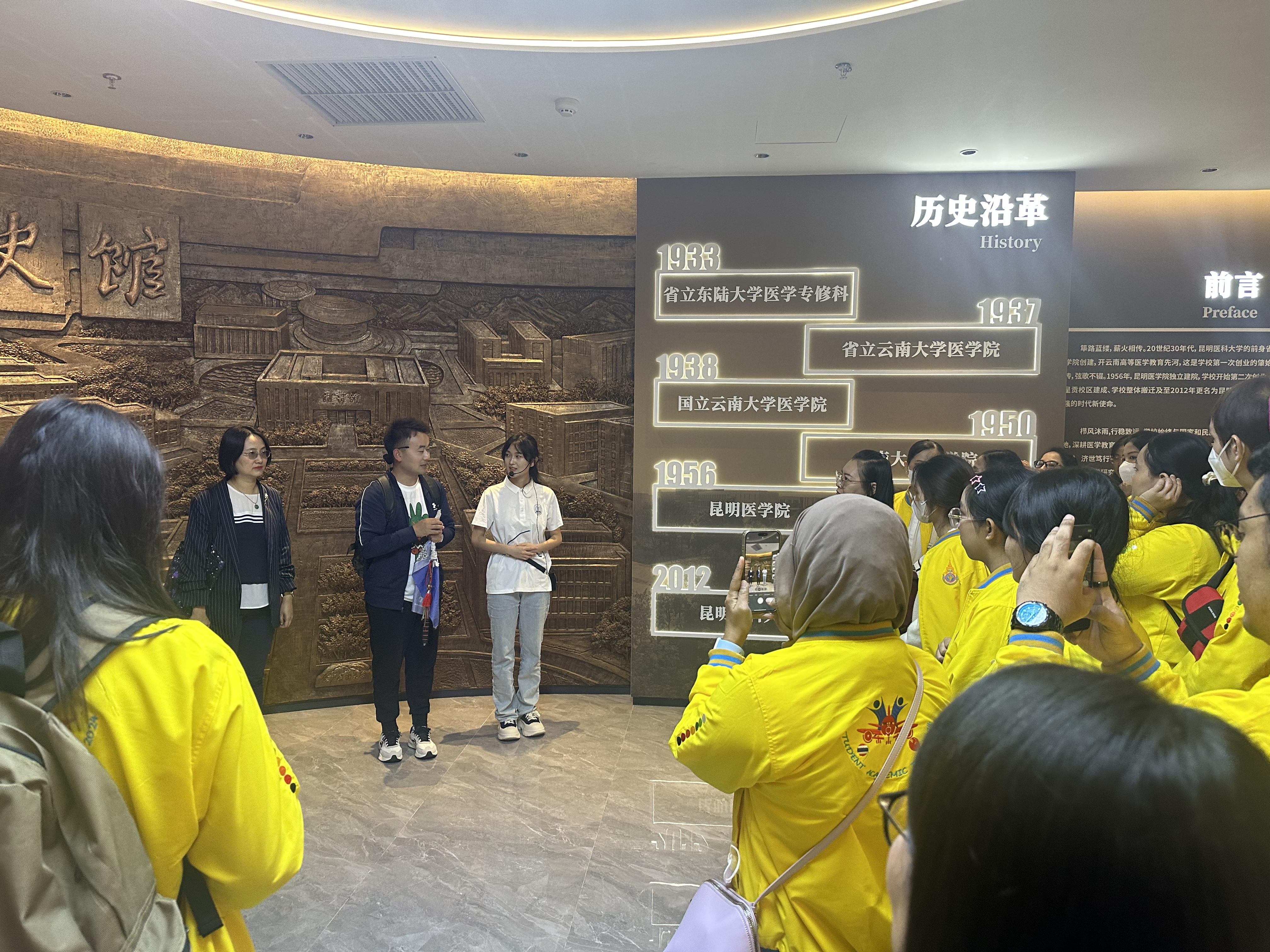 我院师生代表陪同其参观学校博物馆。在参观校史馆、人体科学馆和医学人文馆过程中,与外方友好交流,细致讲解我校建设发展情况。