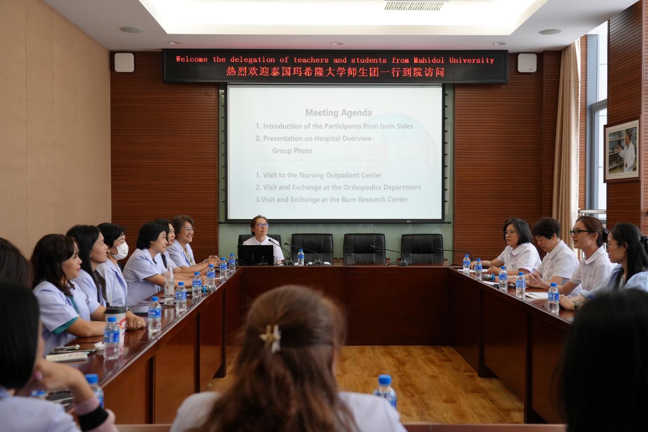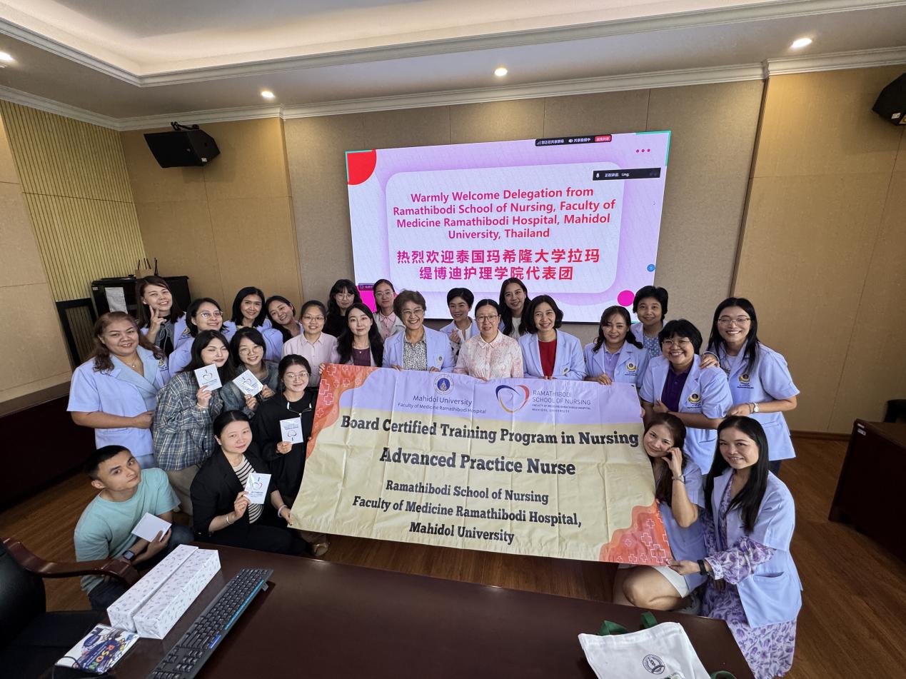 2025年7月29日至31日,泰国玛希隆大学拉玛缇博迪医院护理学院师生代表团一行15人访问Beat365唯一官方网站和四家附属医院,开展了为期三天的学术交流与考察活动。Beat365唯一官方网站护理学院院长卢玉林、附一院护理部主任马芳、附二院护理部主任袁薇、附三院护理部主任关琼瑶和附属儿童医院护理部主任郑玉婷等接待了代表团。