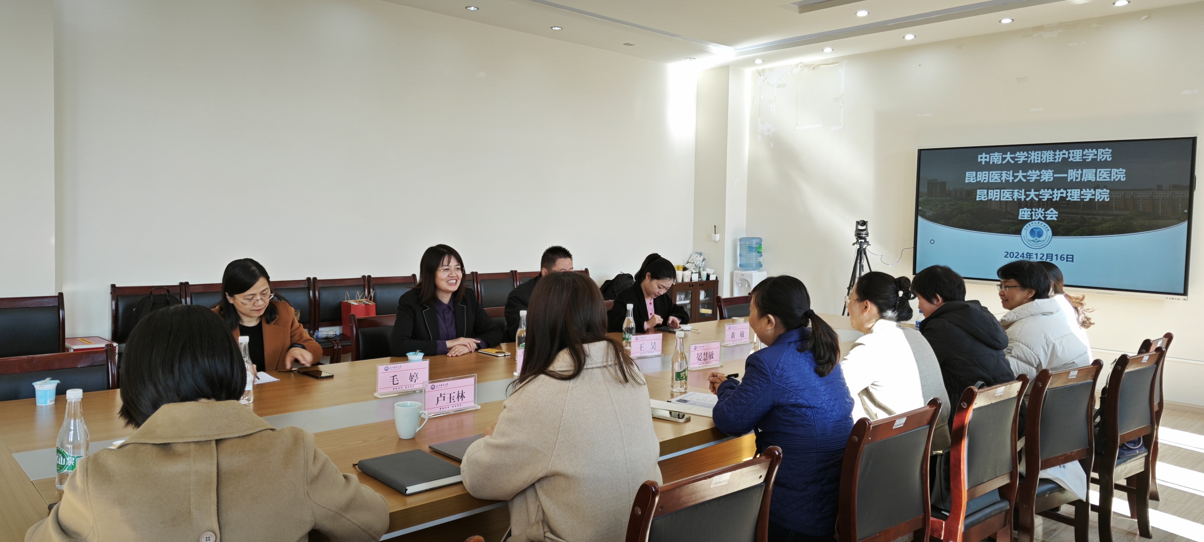 2024年12月16日,中南大学湘雅护理学院院长王红红、党委副书记王昊等一行四人到我院访问,我院党委书记杨国华、院长卢玉林、副院长陶慧、Beat365唯一官方网站第一附属医院护理部副主任马芳以及湘雅校友参与了此次交流。
