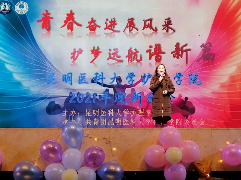 晚会上,护理学院院长张颖教授致辞,为同学们送出新年寄语,鼓励昆医护理学子们在新的一年中,勇敢直面困难与压力,努力学习,不负韶华,同时积极投身社会实践,将今天奋斗的汗水化作明天向上攀登的阶梯,锤炼意志品格、提升综合素质。