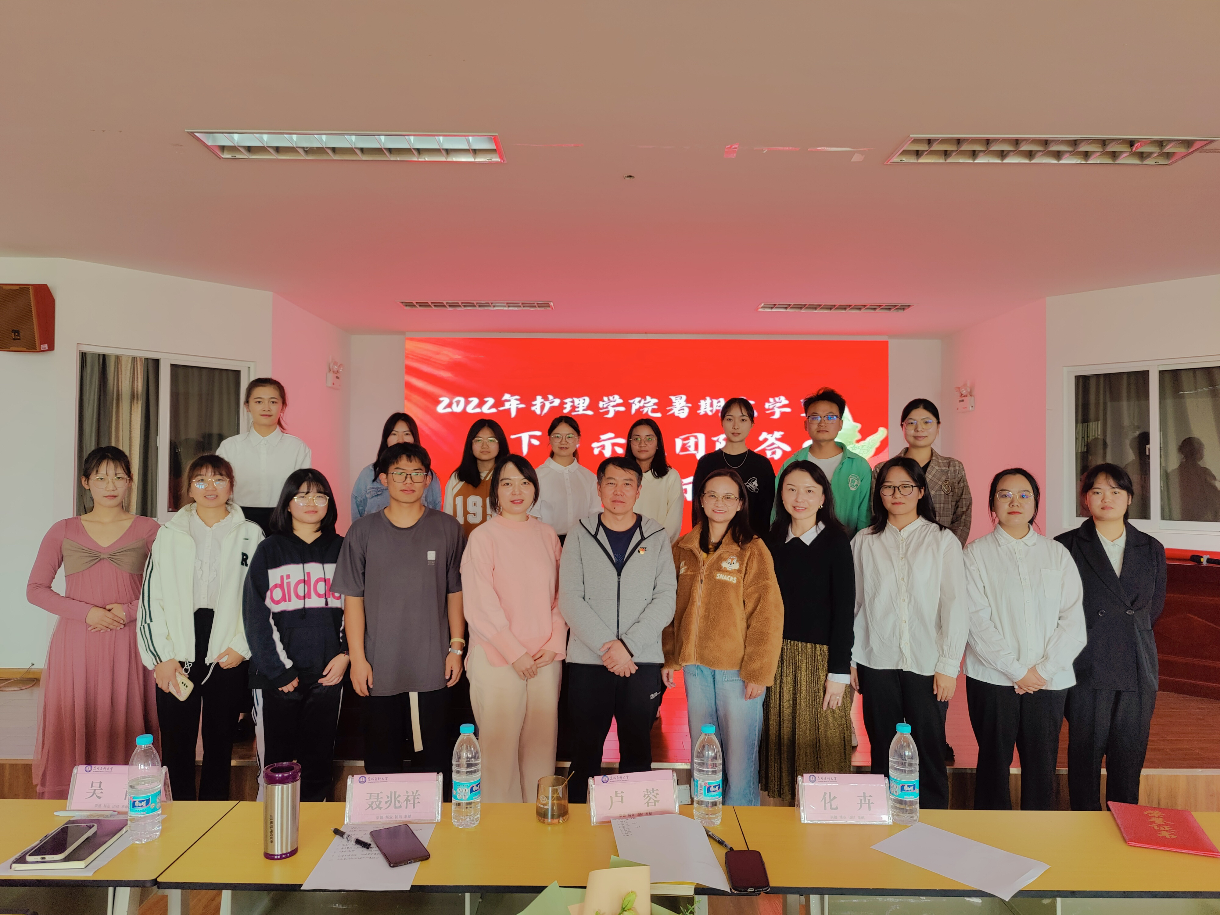 2022年10月21日,Beat365唯一官方网站护理学院2022年暑期大学生“三下乡”示范团队答辩暨成果展示活动在护理学楼501报告厅举行,共10支院级示范团队参加本次活动。本次活动由护理学院团委主办,护理学院党委副书记聂兆祥、学院党政办主任、学生第二党支部书记吴青、学生工作办公室主任卢蓉、团委书记化卉、学科科研及研究生管理办公室教师文信到场担任评委,各立项团队全体成员、院团学骨干代表参与活动。