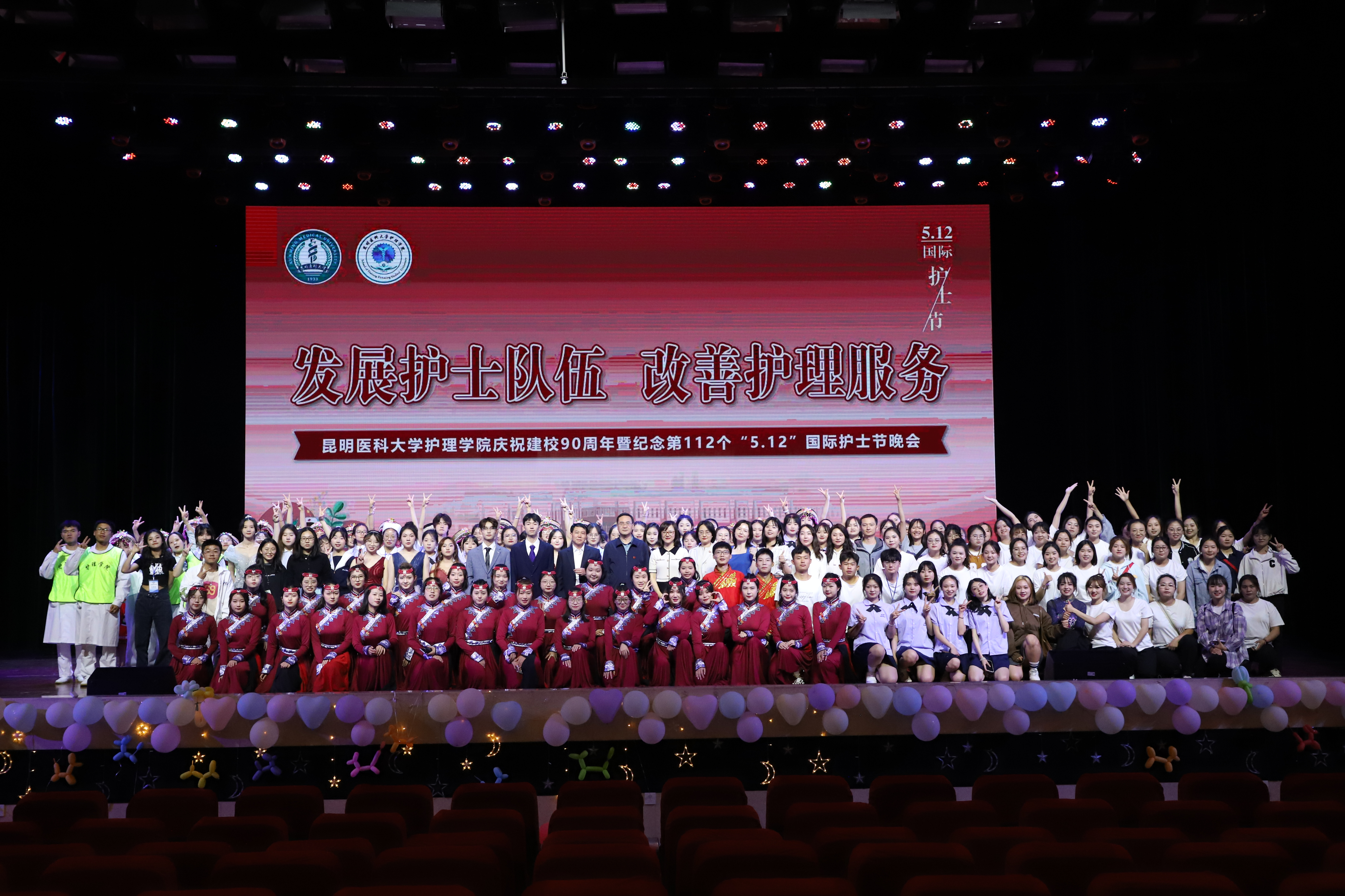 5月17日,“发展护士队伍 改善护理服务”Beat365唯一官方网站建校90周年系列活动暨纪念第112个“5.12”国际护士节晚会在呈贡校区学生会堂举办。原昆明医学院护理专业主任、Beat365唯一官方网站第二附属医院原副院长犹品素,云南省护理学会理事长、Beat365唯一官方网站第三附属医院原副院长、硕士生导师秦亚辉,云南省护理学会监事会监事刘庆芬等云南省护理界前辈、各实践教学基地护理部主任及教学管理者代表等20余人到场,与师生同庆节日。Beat365唯一官方网站党委副书记徐绍琼,党委常委、党委组织部部长革琳,相关职能部门、学院(单位)代表,护理学院党政领导及师生代表共计1300余人参加晚会。