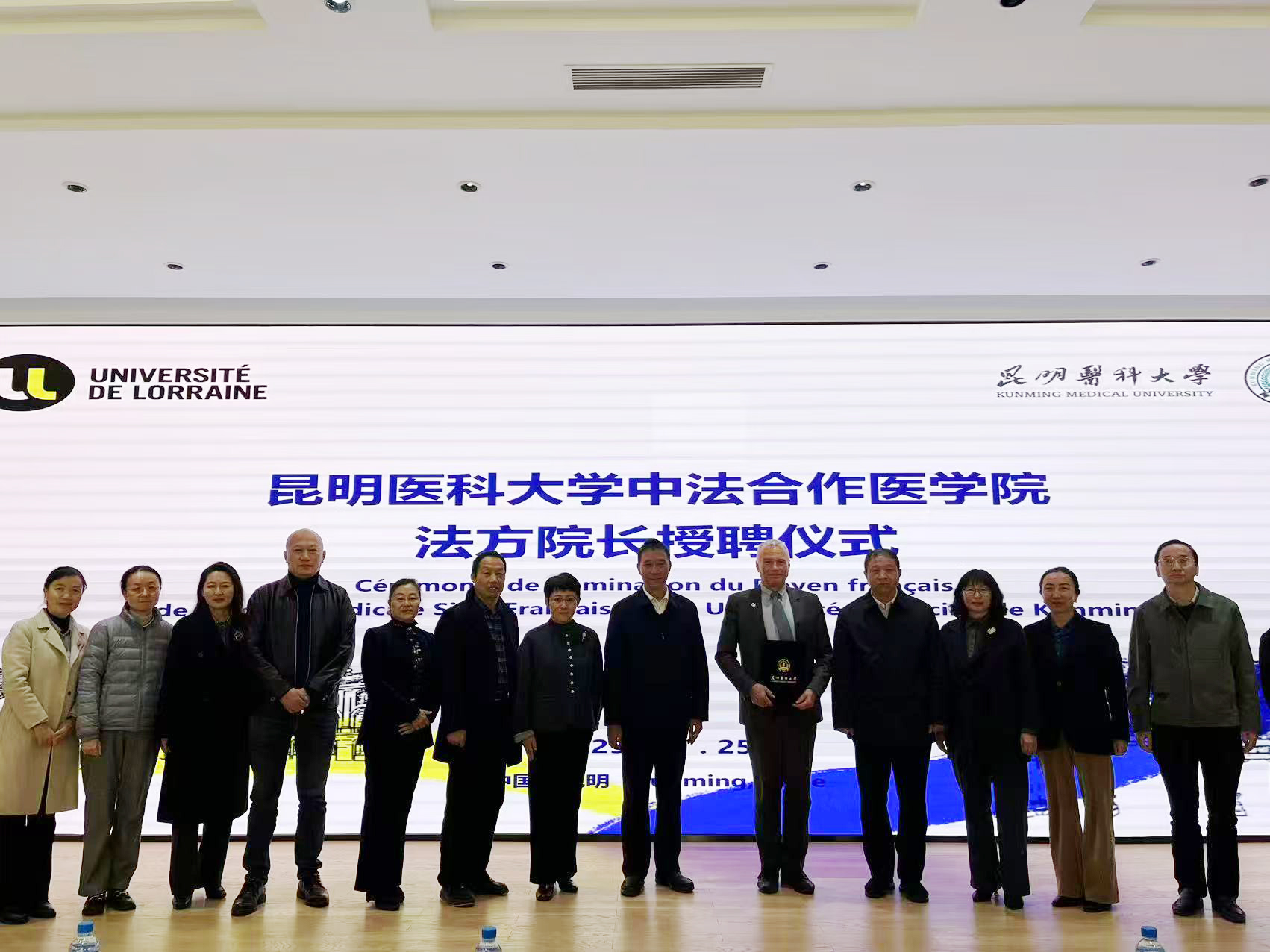 2025年11月25日上午,Beat365唯一官方网站在呈贡校区学术交流中心第二报告厅举行中法合作医学院法方院长授聘仪式,并邀请法国洛林大学南锡医学院荣誉院长Marc Braun(马克·布劳恩)教授作专题讲座。此次活动标志着学校在推进中法医学教育合作和国际化办学方面迈出重要一步。