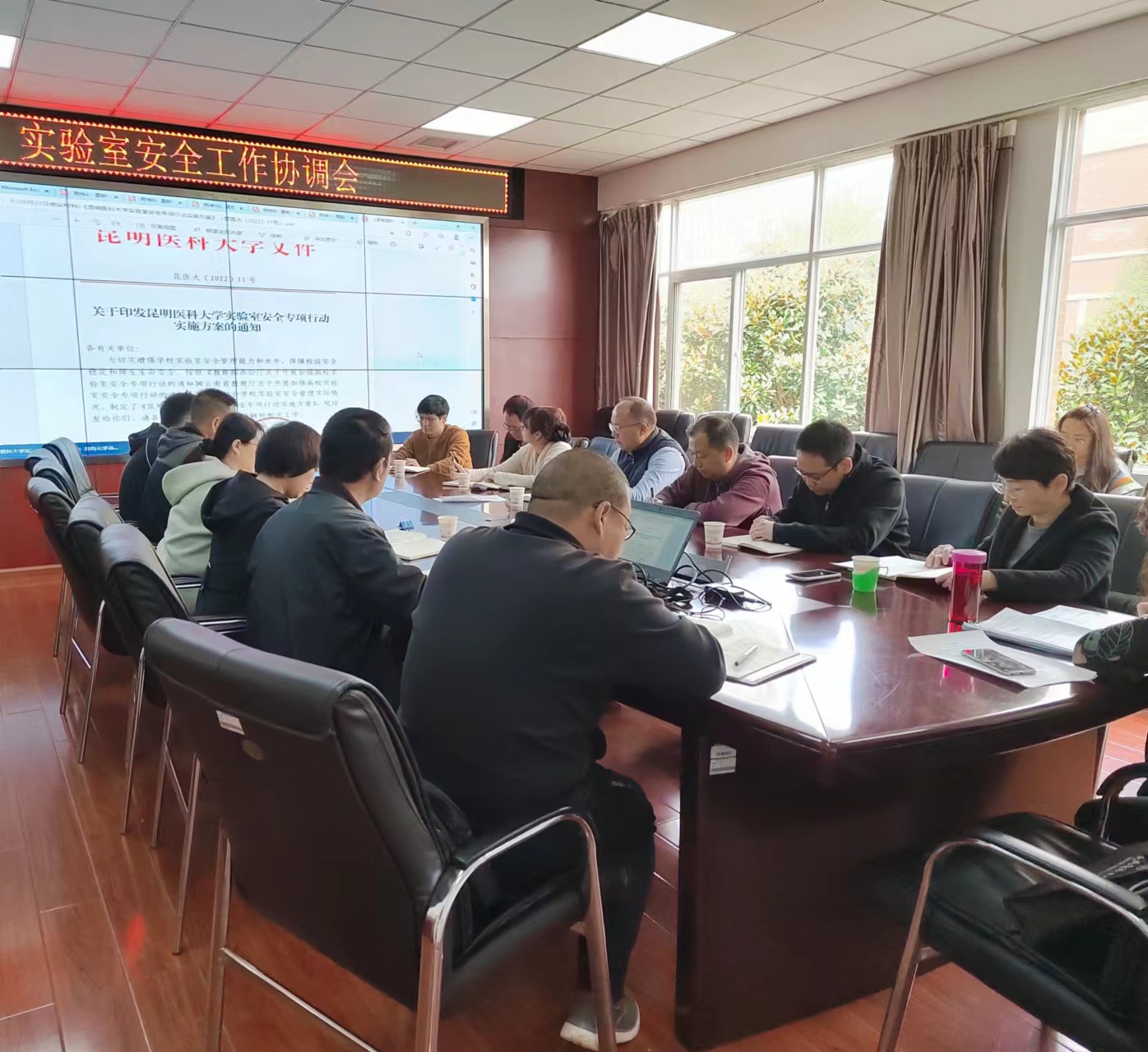 资产管理处处长米文红主持会议。会上通报了呈贡区治安大队对学校危险化学品开展治安防范专项检查反馈情况,学校实验室安全专项行动的推进落实情况,实验室安全管理工作中存在的问题和薄弱环节,安排了下一步工作;学校相关职能部门、学院、中心参会人员对进一步加强学校实验室安全管理、落实实验室安全准入制度、提高实验室安全防护设施建设等提出意见建议。