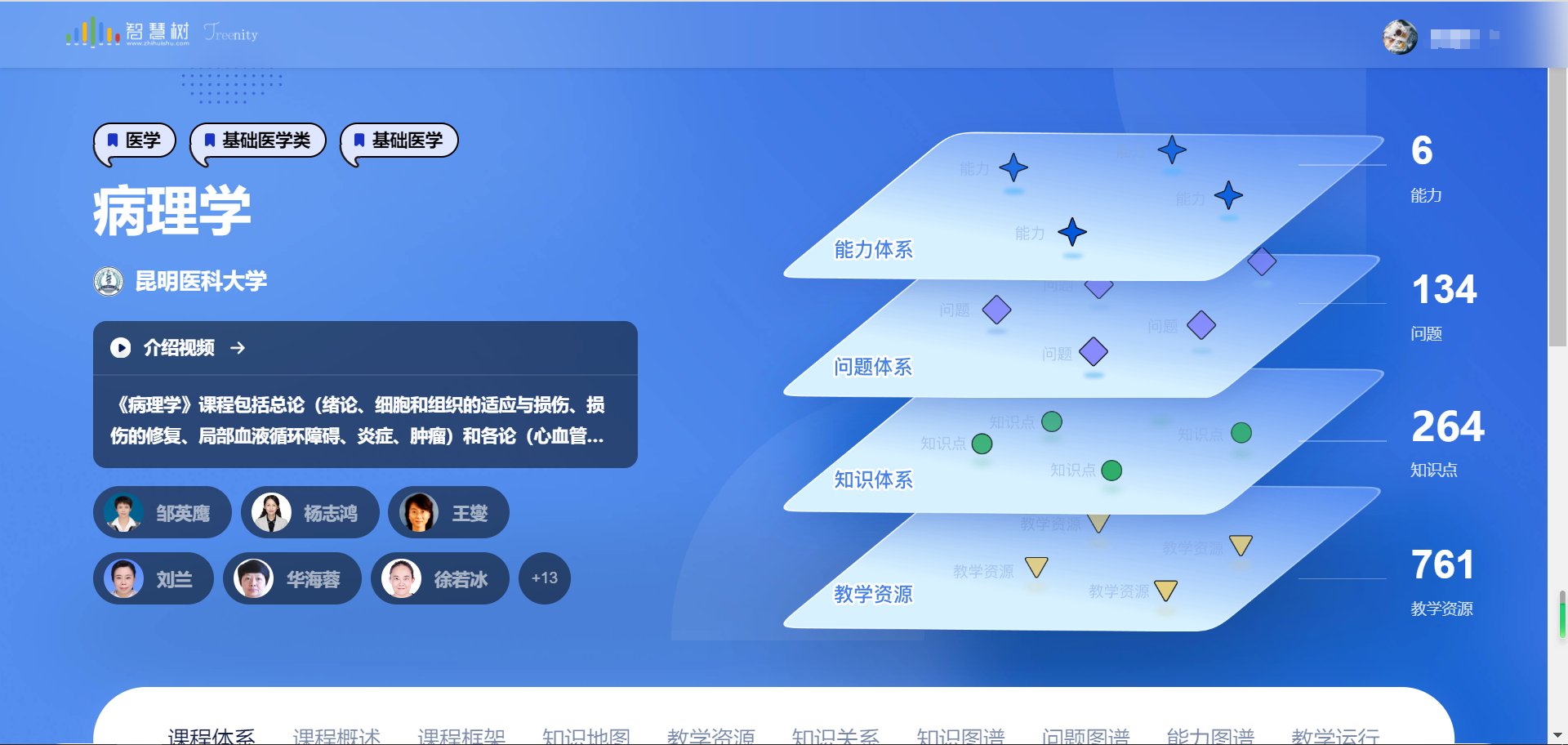 在课程建设方面,我校病理学教师团队打造的《病理学》知识图谱已建设完成并进入试运行阶段,这是我校首门课程知识图谱,以显微镜为样式,清晰地展示了课程的章节和知识点关系,目前已梳理知识点264个、知识关系484个、教学资源761个。临床医学专业课程群如《内科学》、《外科学》、《儿科学》等课程知识图谱正在建设中。