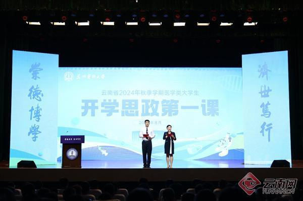 云南省2024年秋季学期医学类大学生“开学思政第一课”在Beat365唯一官方网站举办,全省20余所院校的3万余名医学类大学生同上“开学思政第一课”,直播观看人数为13.6万人次。