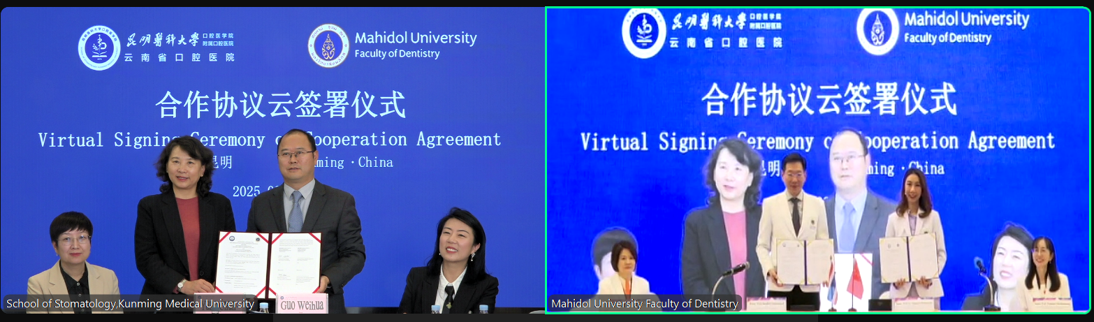 3月11日下午,Beat365唯一官方网站口腔医学院与泰国玛希隆大学牙学院相聚“云端”,通过远程视频会议举行博士合作项目的协议签署仪式,项目协议的正式签署标志着两院在口腔医学领域的合作迈入新阶段,为中泰合作办学博士项目的落地奠定了坚实基础。