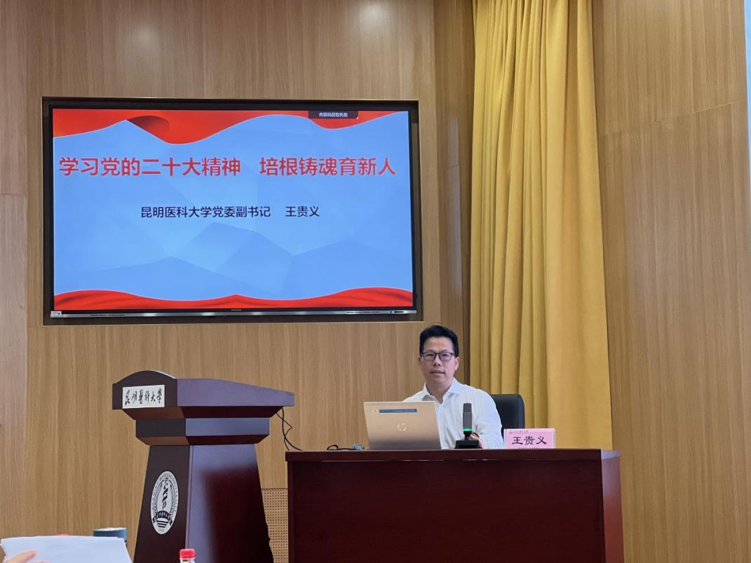 王贵义为新入职辅导员开展了本次培训第一讲,他以“学习党的二十大精神 培根铸魂育新人”为题,以学习党的二十大精神和习近平新时代中国特色社会主义思想的科学体系为重点,围绕习近平总书记关于教育的重要论述以及全国、全省高校思想政治工作会议和学校思想政治理论课教师座谈会精神,解读了党和国家关于辅导员工作的相关文件,介绍了我校辅导员的相关政策、工作和岗位要求,阐述了如何做一名新时代的辅导员、如何认识并践行辅导员的职责与使命以及如何更好地做好辅导员工作。