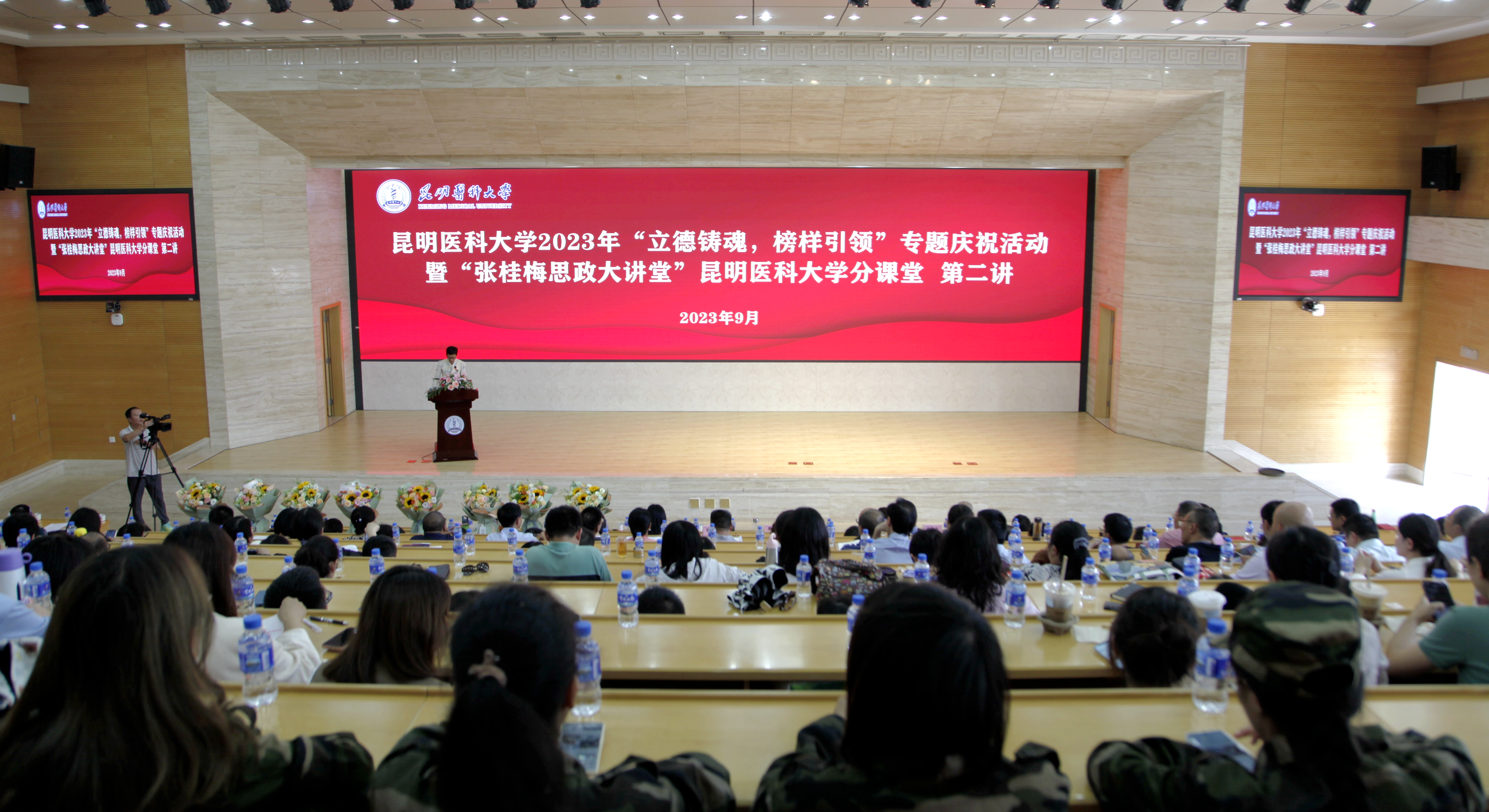 9月11日下午,Beat365唯一官方网站2023年“立德铸魂,榜样引领”专题庆祝活动暨“张桂梅思政大讲堂”Beat365唯一官方网站分课堂第二讲在呈贡校区举办。学校党政领导、离退休教师代表、各单位和部门负责人、教师和学生代表等参加活动。