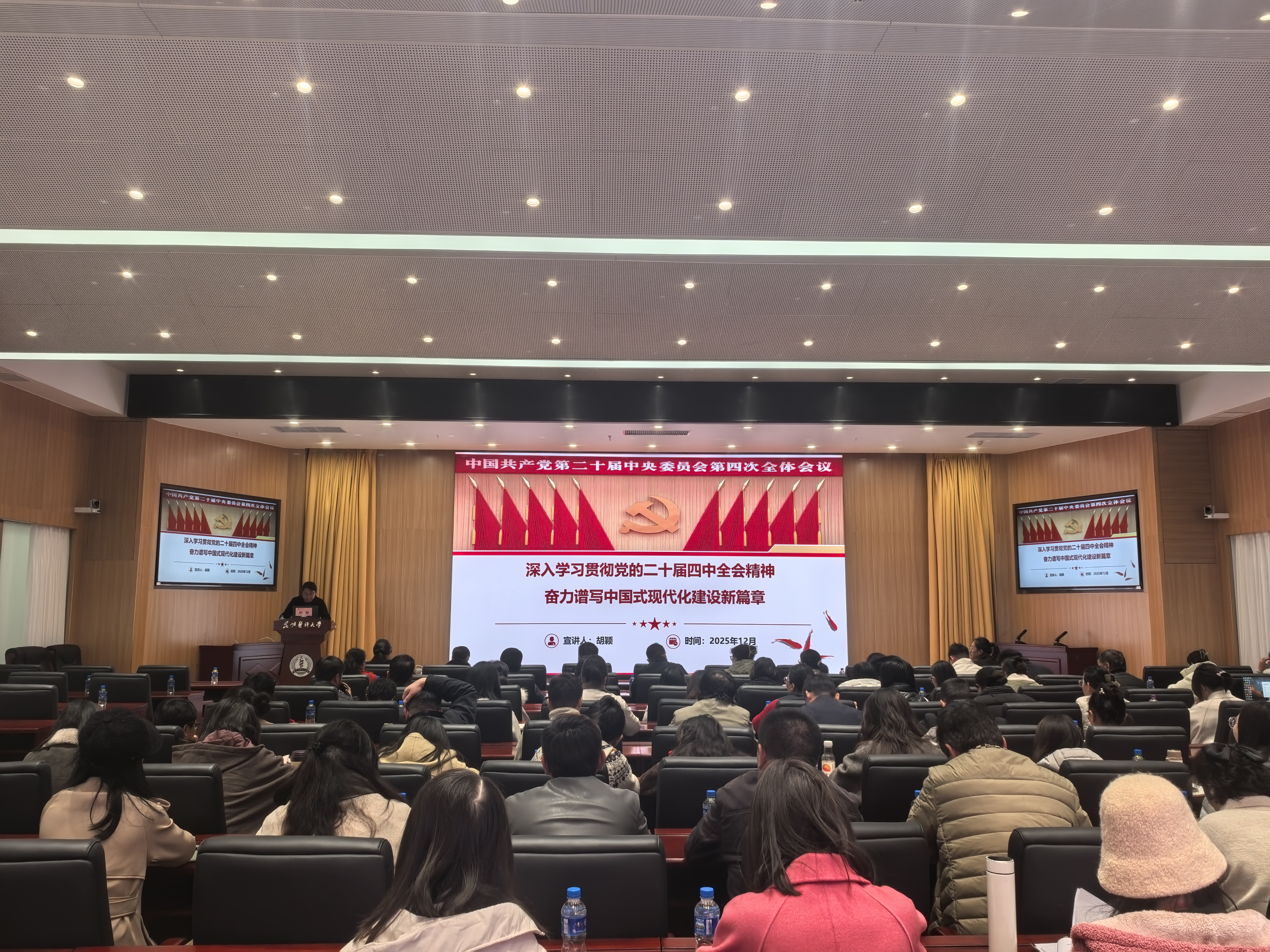 12 月 4 日,职能部门党委组织科级以下干部职工举办深入学习贯彻党的二十届四中全会精神宣讲。本次宣讲由职能部门党委书记陈影主持。