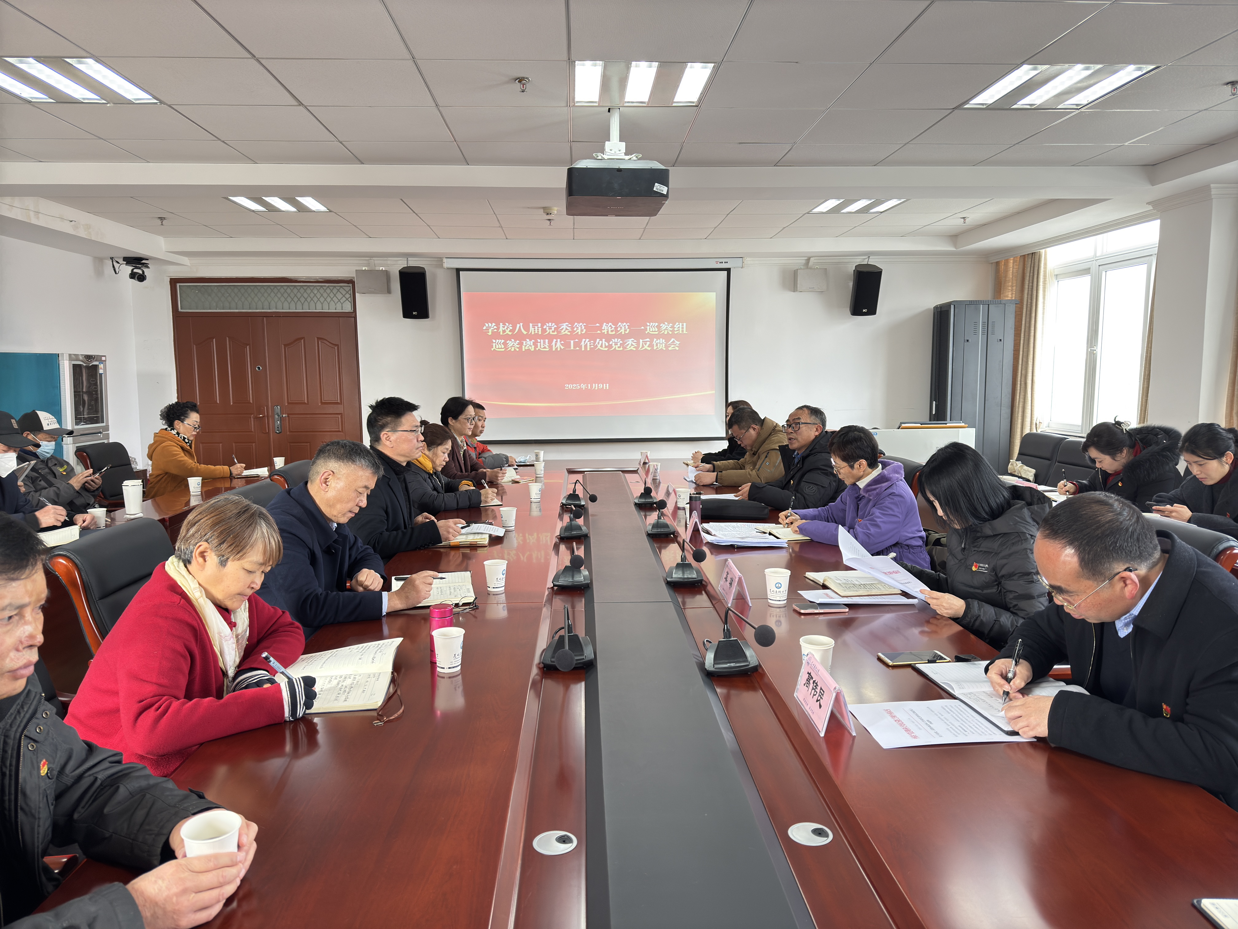 2025年1月9日,学校党委第二轮第一巡察组向离退休工作处反馈了巡察情况。会前,巡察组向离退休工作处党委书记孙选平反馈了巡察意见。会上,第一巡察组组长杨正洲向离退休工作处反馈了巡察意见,学校党委副书记、党委巡察工作领导小组副组长徐绍琼出席会议并讲话,孙选平主持会议并作表态发言。