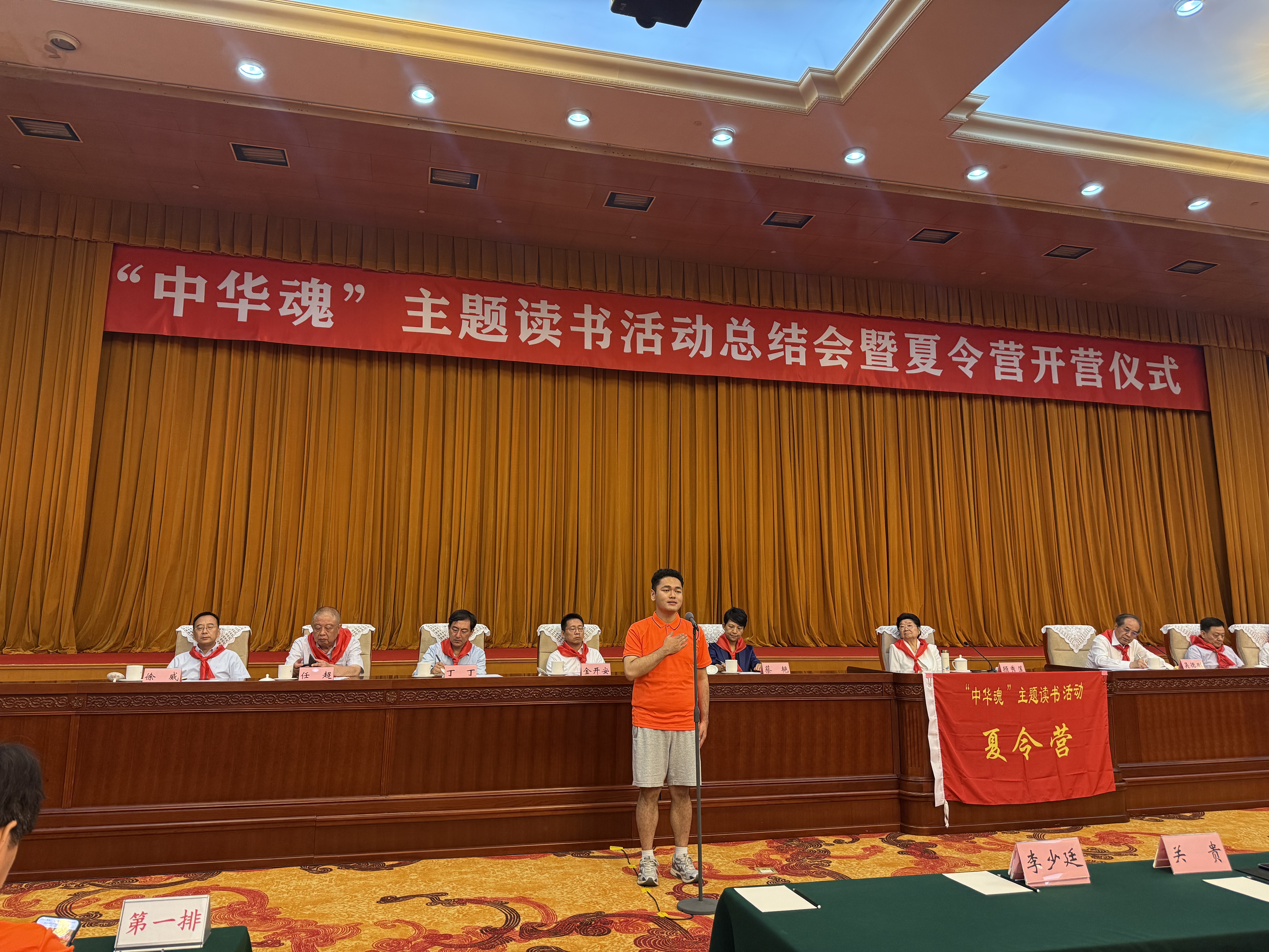 7月14日至16日,由中国关心下一代工作委员会主办的“中华魂”(毛泽东崇高精神风范)主题读书活动全国总结会暨夏令营开营仪式在北京隆重举行。来自全国28个省、市、自治区关工委及400余名师生代表齐聚一堂,共襄盛举。由学校关工委选派的公共卫生学院2023级公共卫生专业硕士研究生金轩昂,凭借题为《健康之路的璀璨灯塔》的精彩演讲,经过层层选拔脱颖而出,作为全国优秀选手代表在全国人大会议中心进行成果展示,斩获“演讲银星”荣誉称号。