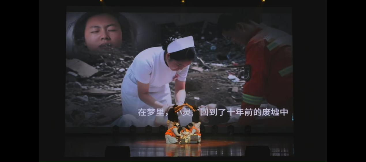 心理剧《追不上的背影》讲述了地震中被无名护士从废墟中救起的女孩,以无名护士带来的“生命之光”为指引,用坚守直面质疑和困难,成长为托起患者希望的白衣天使的故事,她用实际行动展现了信念的强大与平凡中的伟大。